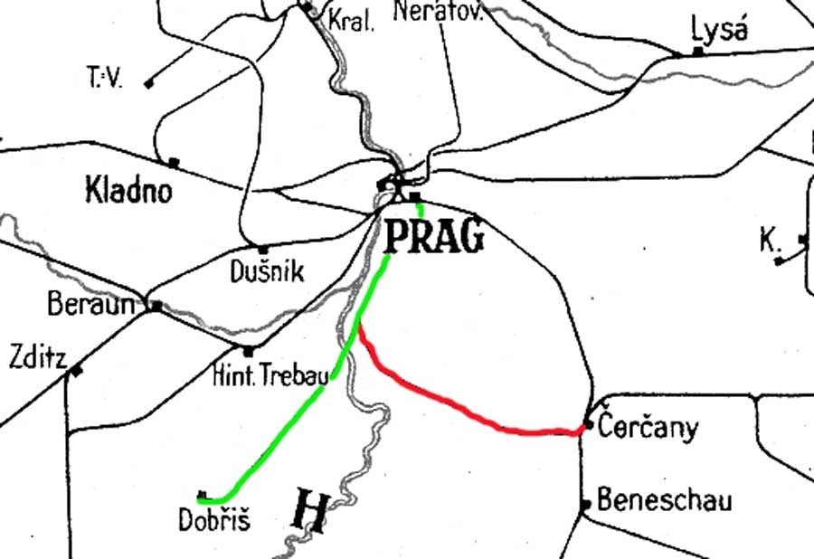Tschertschan / Čerčany 0,0 - Skochowitz (Wran) Abzweigung / Skochovice 34,818