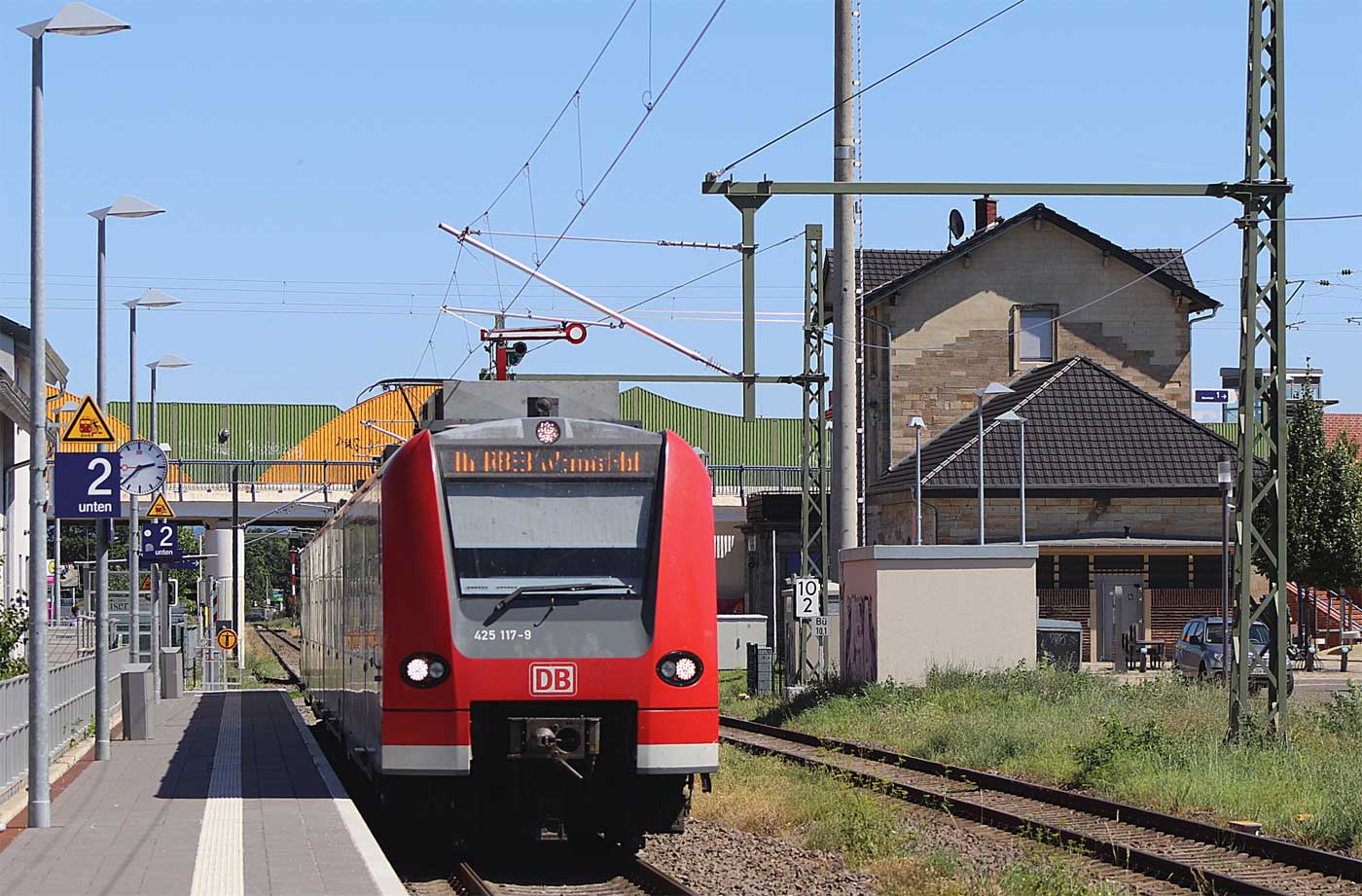 | Bürstadt | 10,22 | km 23,01 der Strecke Mannheim Hbf 0,0 - Lampertheim 17,55 - Biblis 28,11 - Goddelau-Erfelden 45,71 - Groß Gerau-Dornberg 54,46 - Frankfurt (Main)-Sportfeld 74,76 |