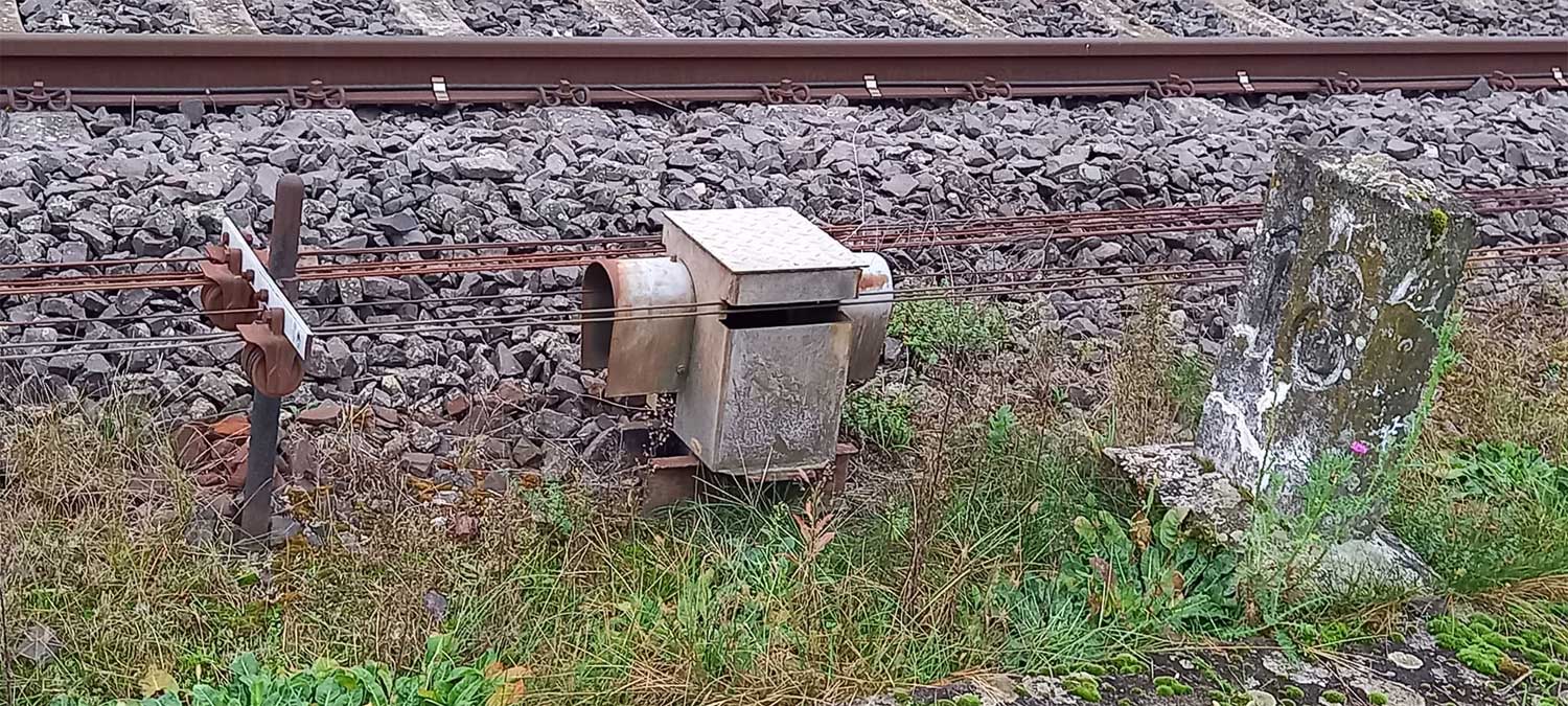 | km 30,18 der Strecke (Mannheim Hbf 0,0) - Lampertheim 17,55 (Abzweig von Strecke 231) - Worms Hbf 30,18 | ||