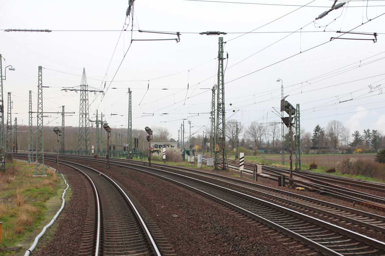 km 0,4; km 0,6 und km 0,8 in Worms Hbf - Blick Richtung Biblis