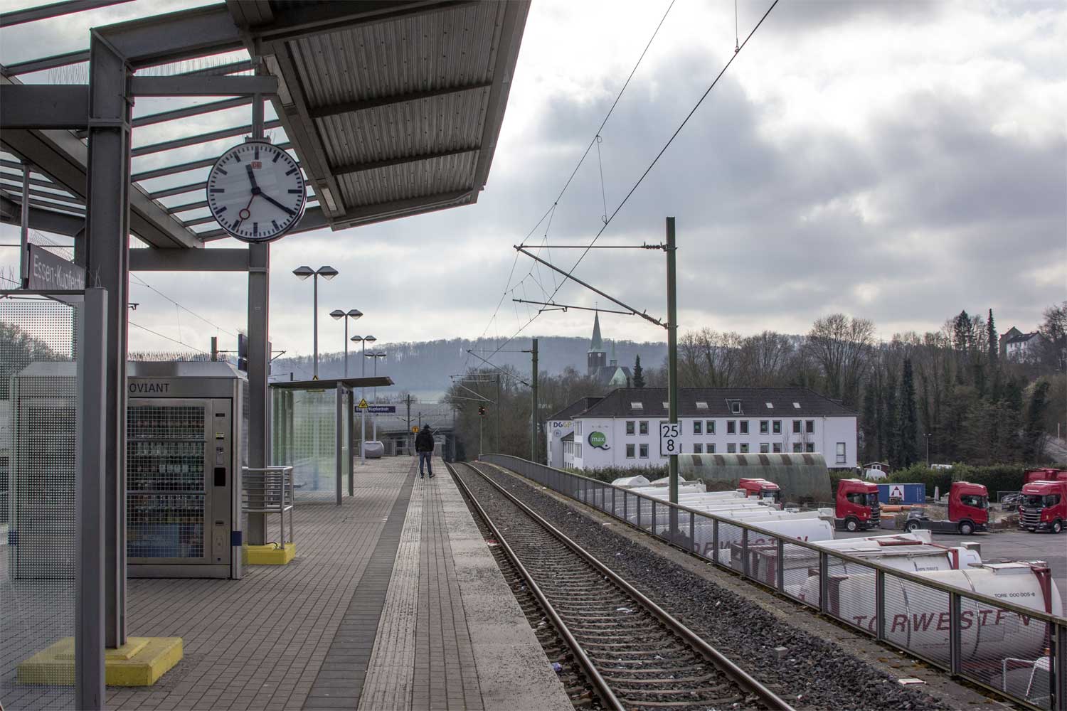 26,334 km 33,677 der Strecke Düsseldorf Hbf -0,01 - Essen-Werden 24,97 - Streckenunterbrechung - Essen-Kupferdreh 33,74 - Essen-Überruhr 37,80 - Streckenunterbrechung - Bochum-Dahlhausen 45,15 - Hagen-Vorhalle 76,00 - Hagen-Kabel 82,46 (2400)