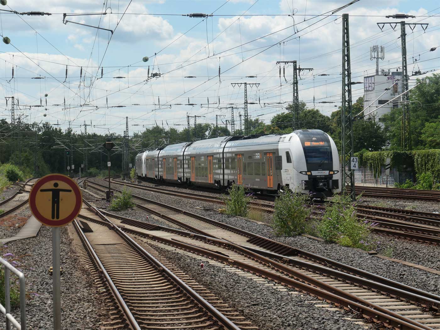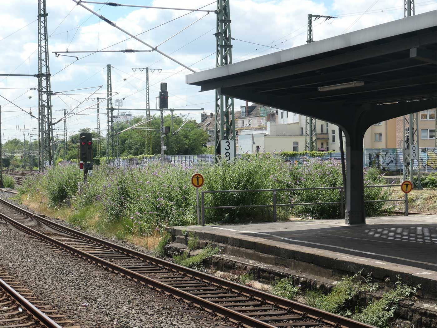 Hier die oben erwähnte Tafel km 44,0 in Köln-Mülheim mit Blickrichtung Köln