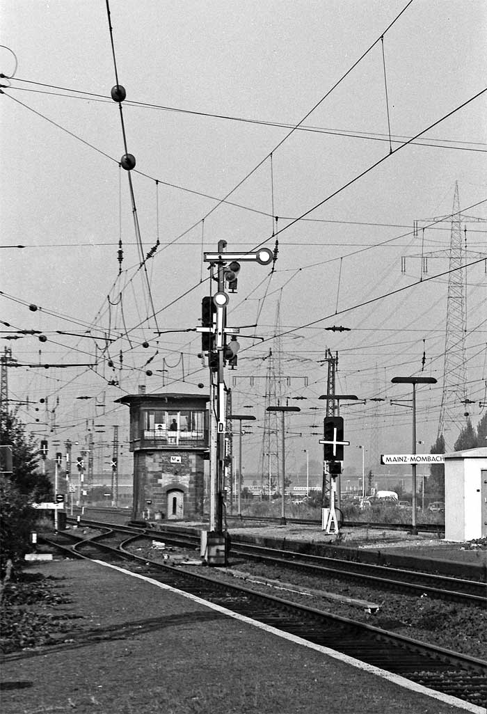 | Mainz-Mombach | 27,26 | km 0,0 der Strecke Mainz-Mombach 0,0 - Mainz-Bischofsheim 12,68 - (Abzw Überleitung 16,1) |