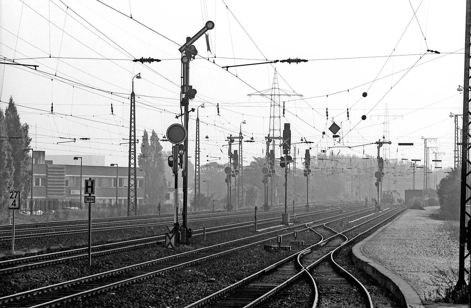 Gleiche Stelle bei km 0,6; aber Jahre später - Das Reiterstellwerk ist rosa.