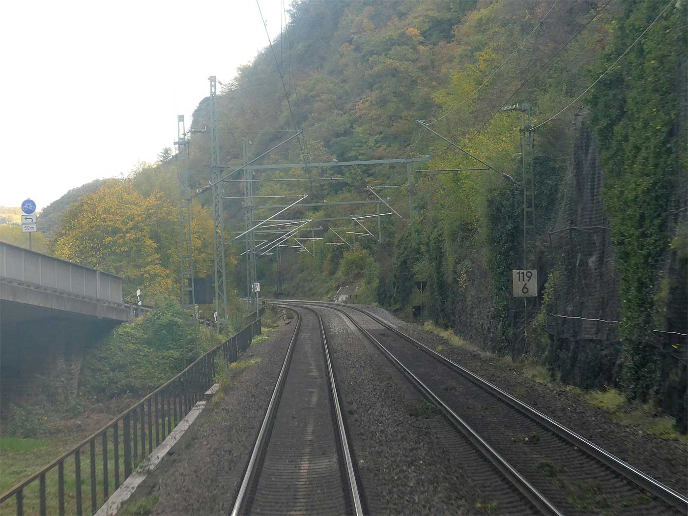km 119,4 in Hirzenach - Blick Richtung Köln