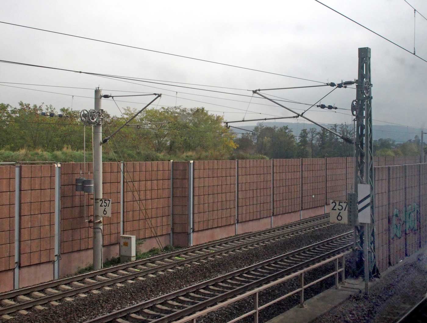 Rechts hinter der Lärmschutzwand die Strecke