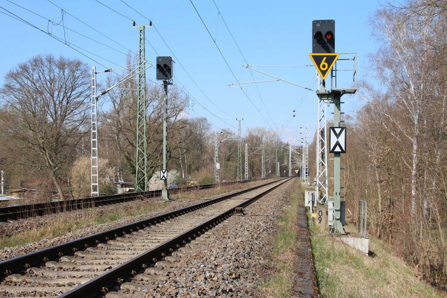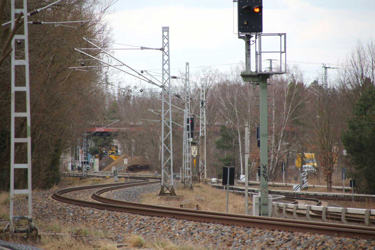 km 12,8 (Richtungsgleis) und km 13,0 (Richtungsgleis) im Bereich Grünauer Kreuz - Blick Richtung Görlitz
