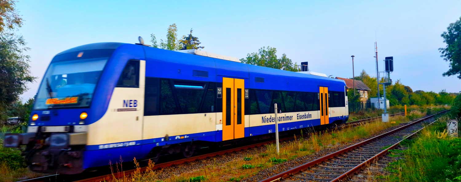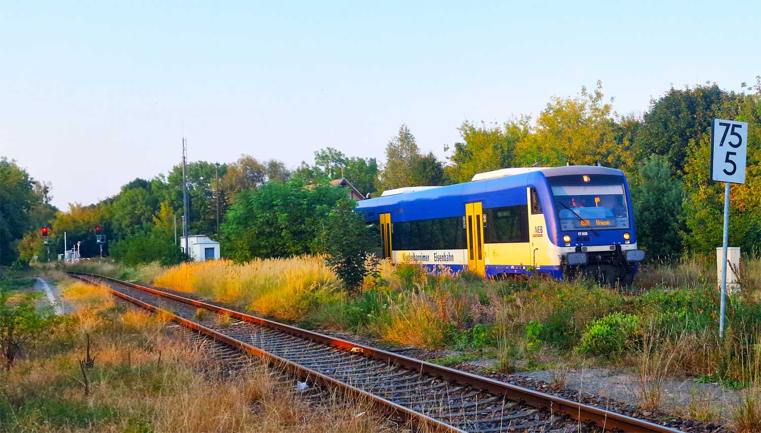 VT 014 der NEB im Doppelgespann als Zug 61319