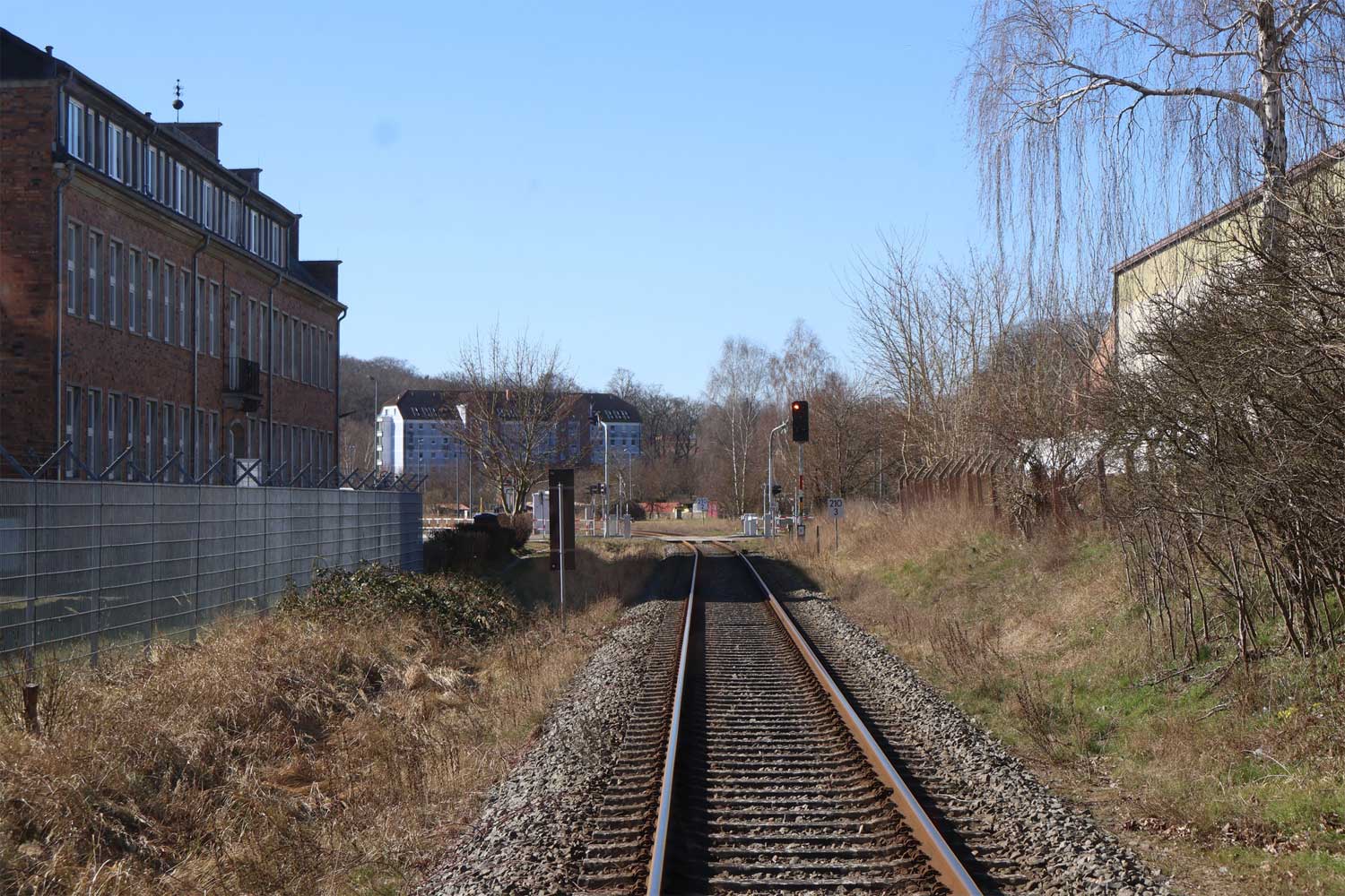 km 210,5 in Wolgast Hafen - Blick Richtung Züssow