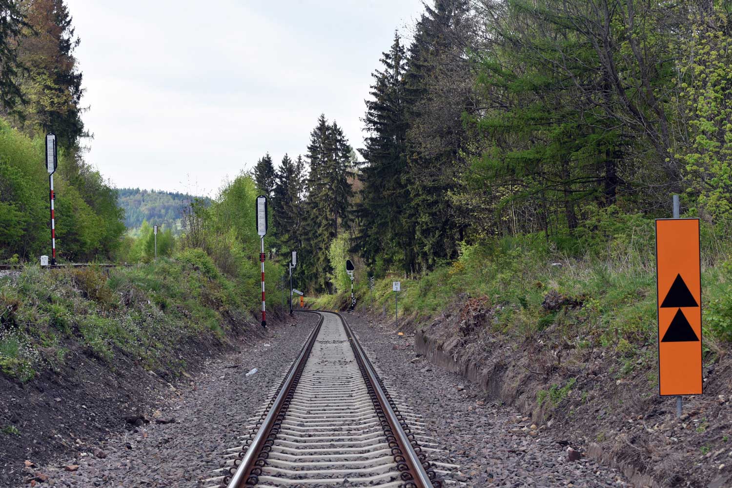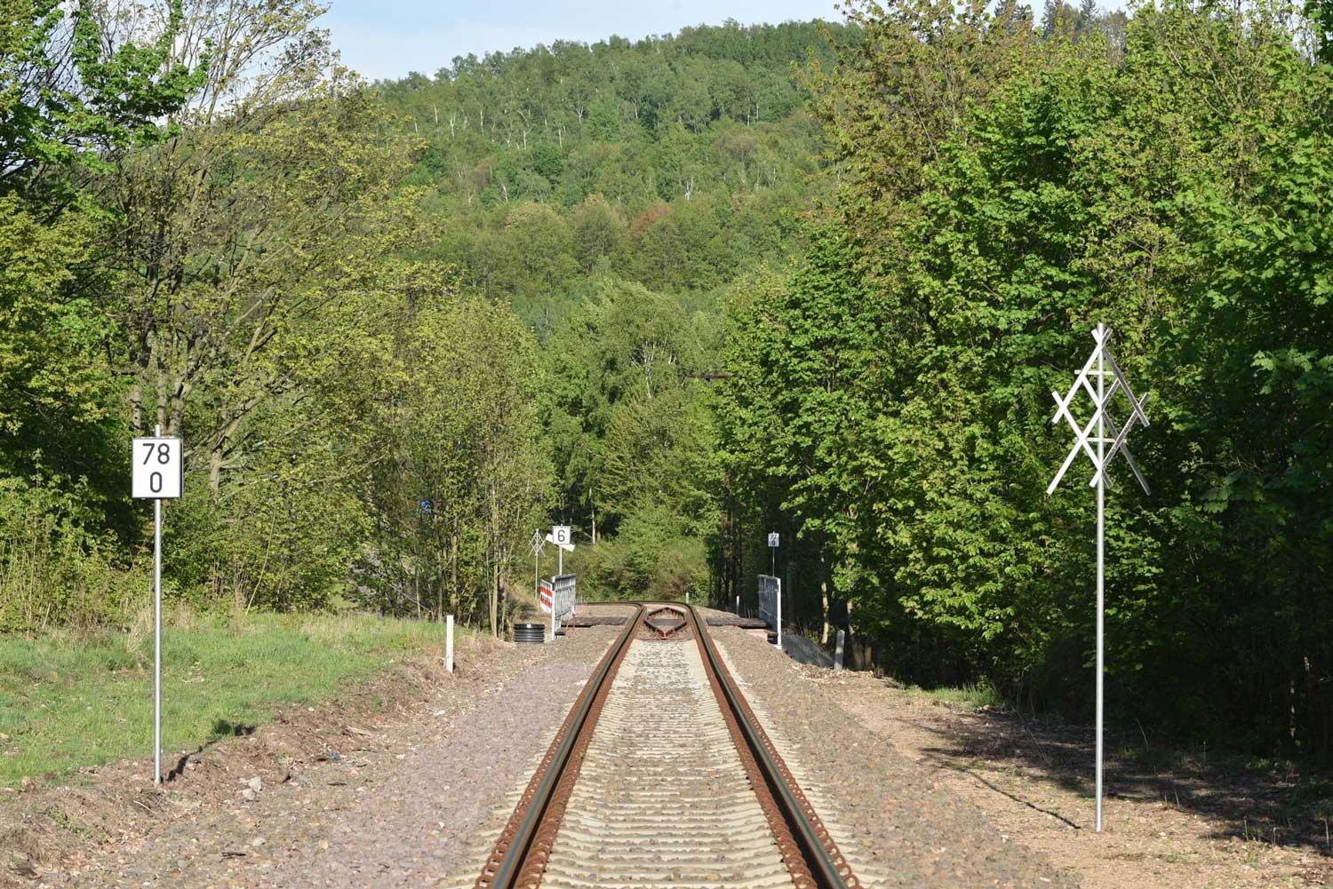 km 81,4 in Jedlina Zdrój (Bad Charlottenbrunn) - Blick Richtung Streckenende