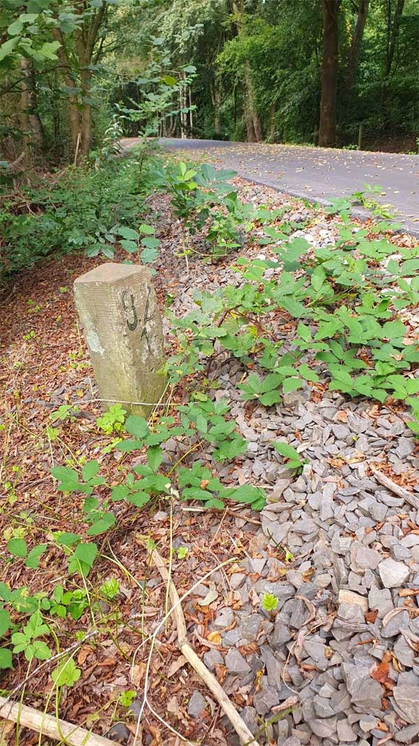 Der Kilometerstein wurde wahrscheinlich wegen der Drahtzugleitung zerteilt.