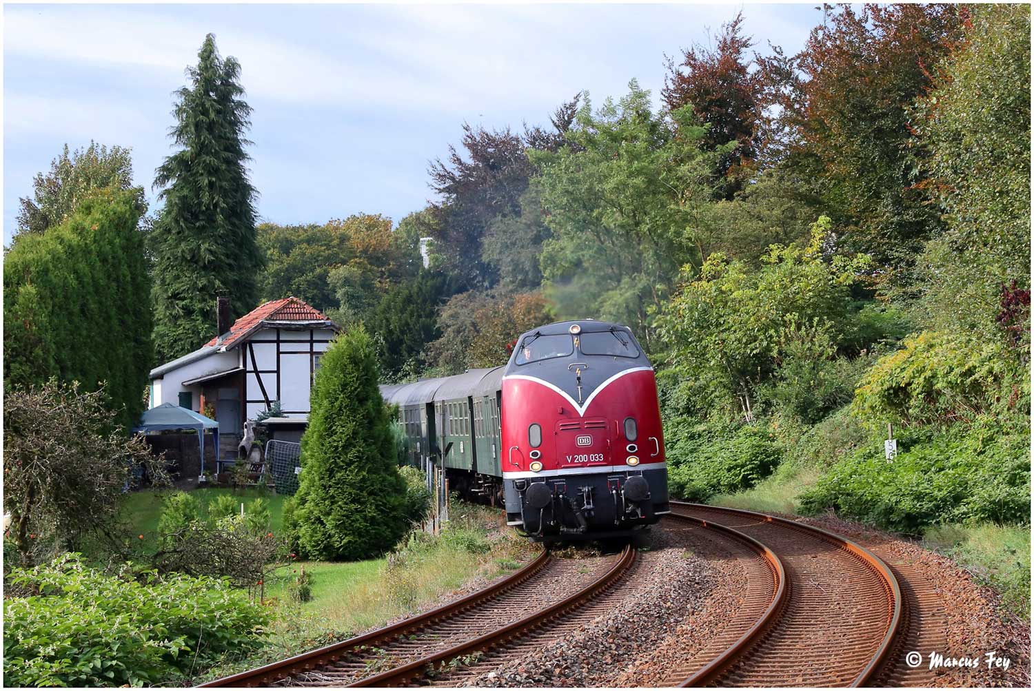 V200 033 (ex. DB 220 033), BD3yg, B3yg, B3yg, B3yg, AB3yg, AB3yg, BD4yg und einem Pwg