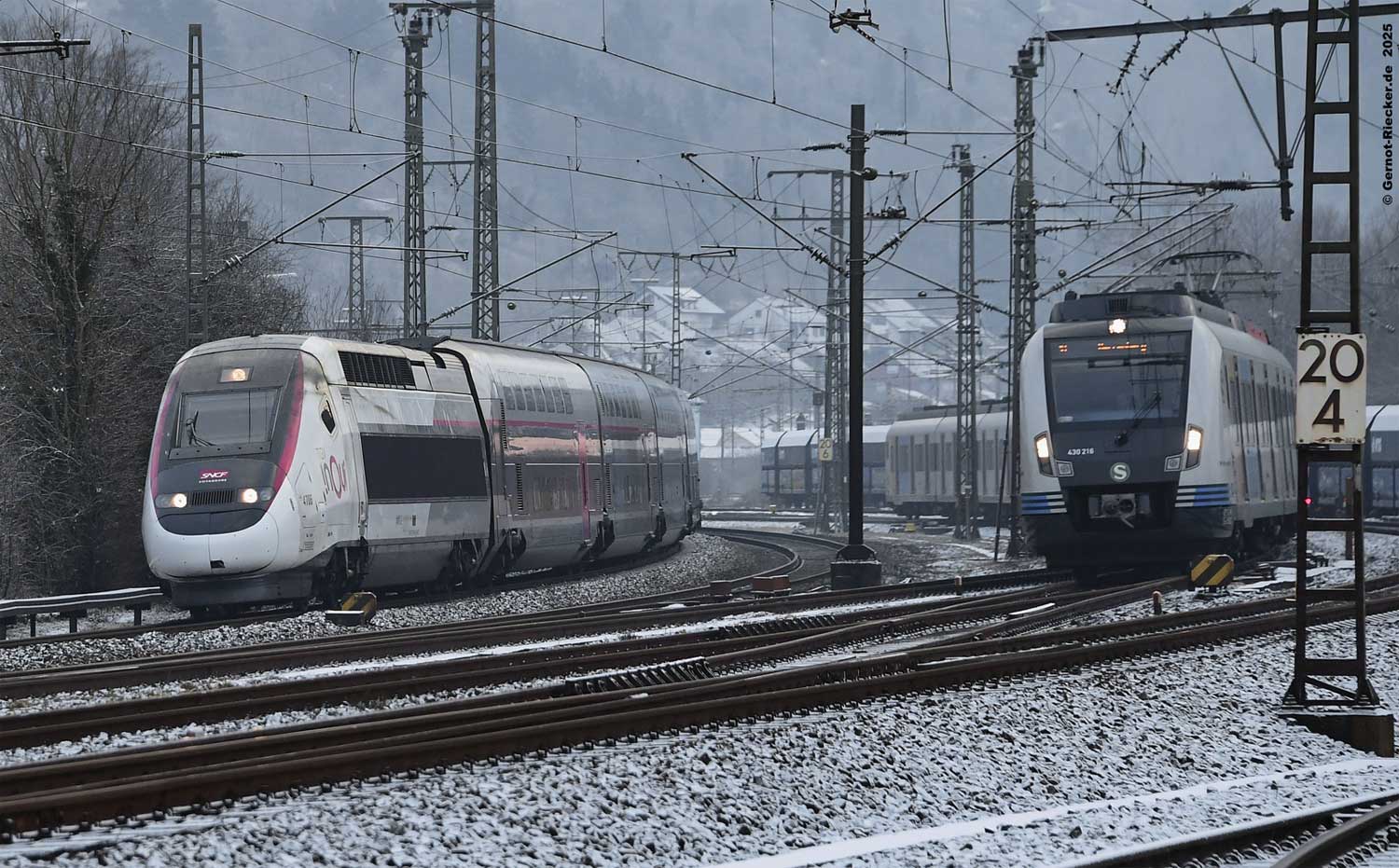 Unten die Strecke Aalen - Ulm Hbf (links) und rechts der Streckensat nach Ulm Rbf