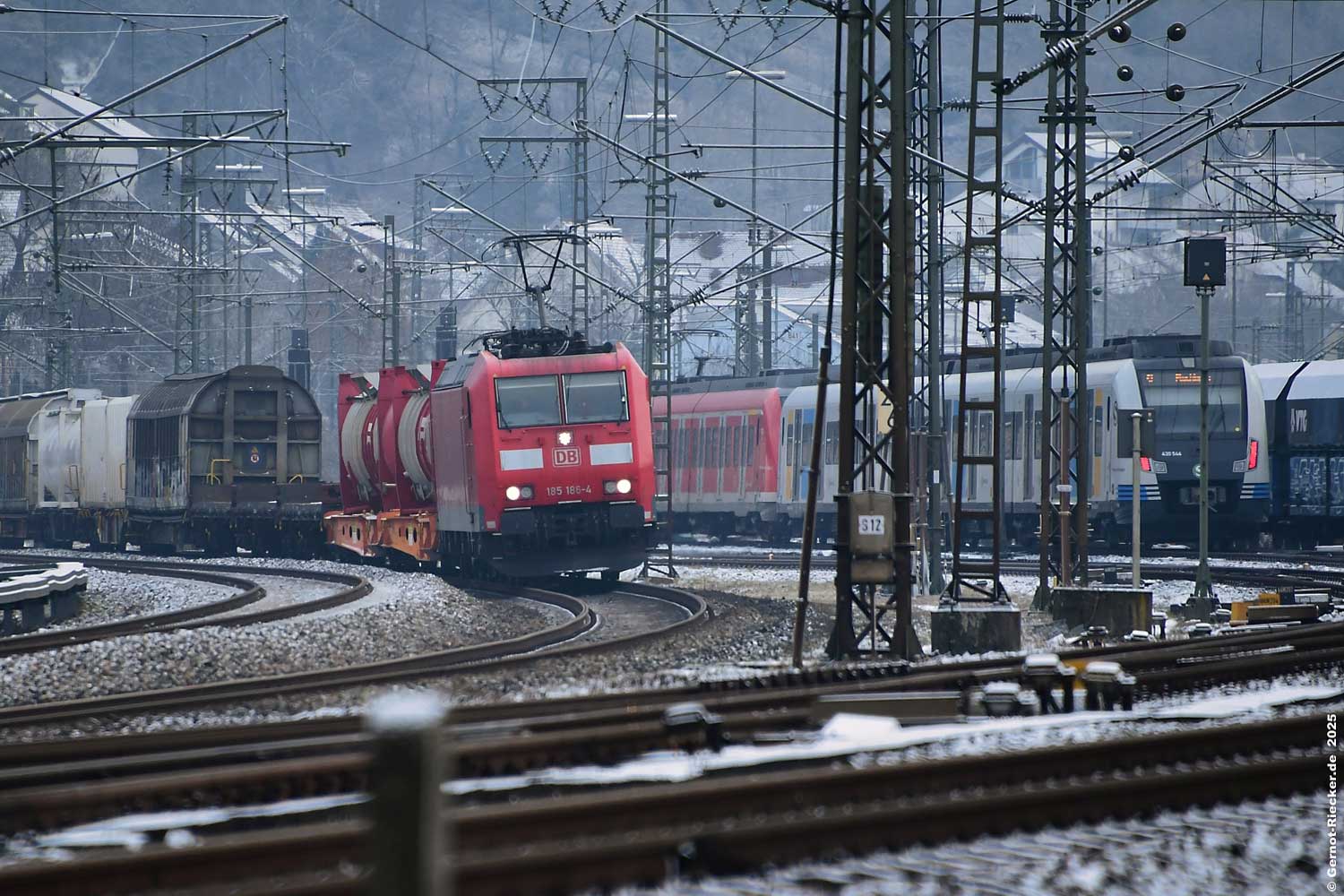 Unten bei km 71,8 der Strecke Aalen - Ulm Hbf am Abzw Ulm Kienlesberg mit 215 149 mit E 3515