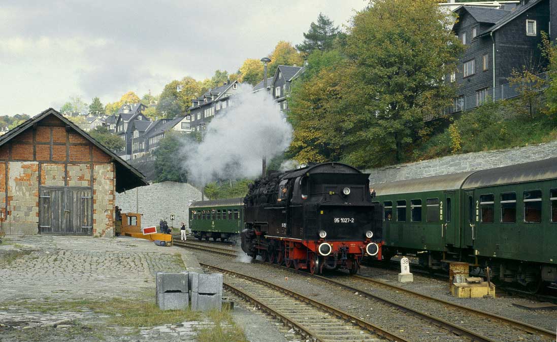 95 1016 bei der Einfahrt in den Bf Lauscha aus Ri Sonneberg