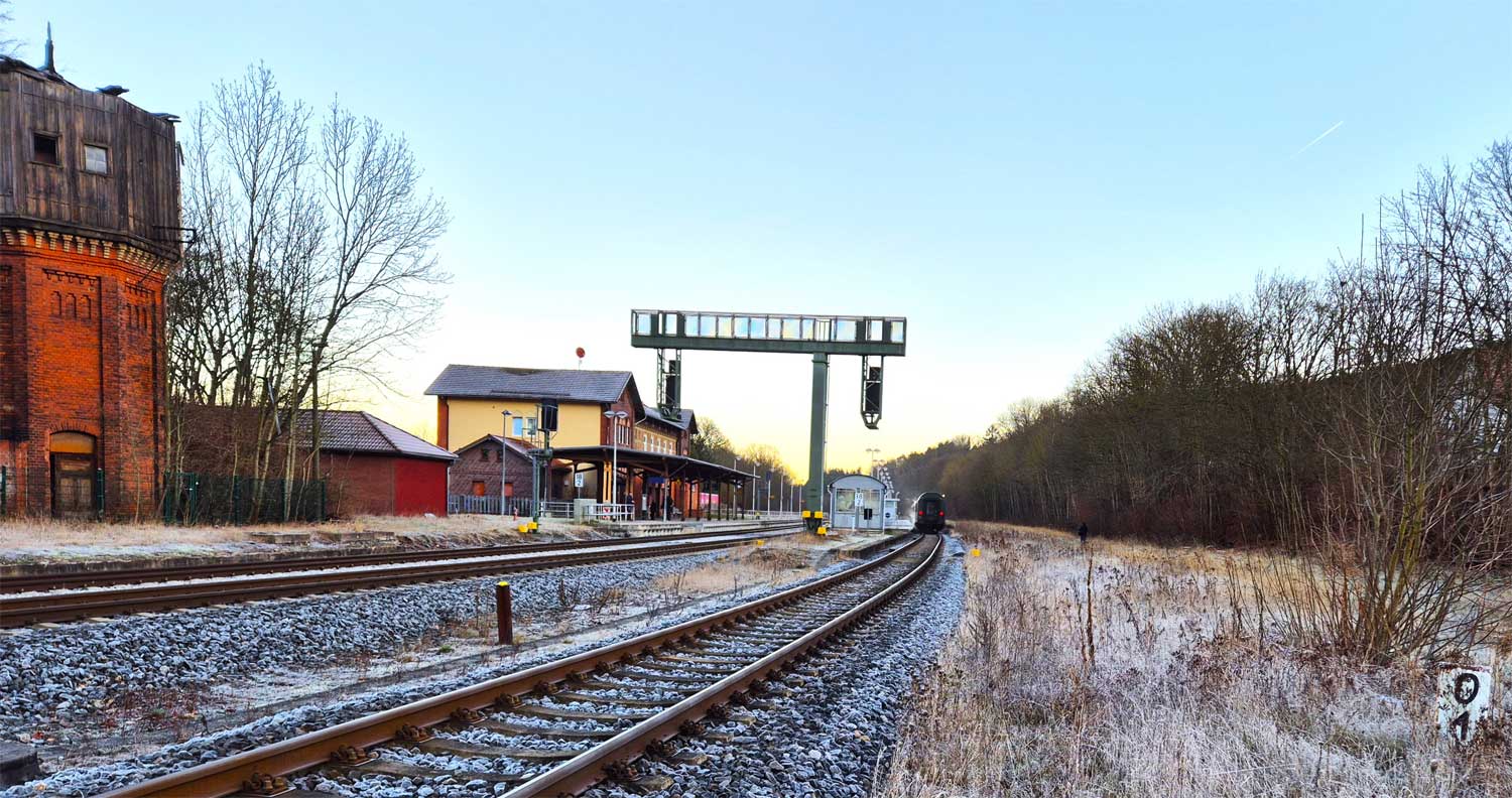 Blick vom Planum der Strecke Rennsteig - Frauenwald auf den Bf Rennsteig