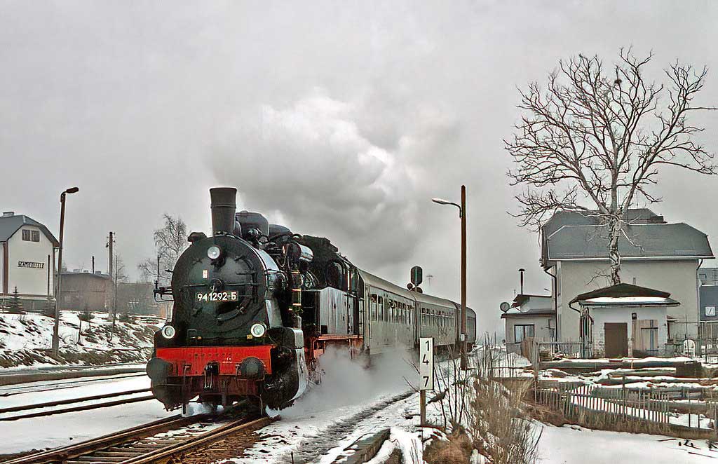 95 0040 mit sowjetischer Schneeräumeinheit SRE 41 am km 23,3 in Ernstthal am Rennsteig