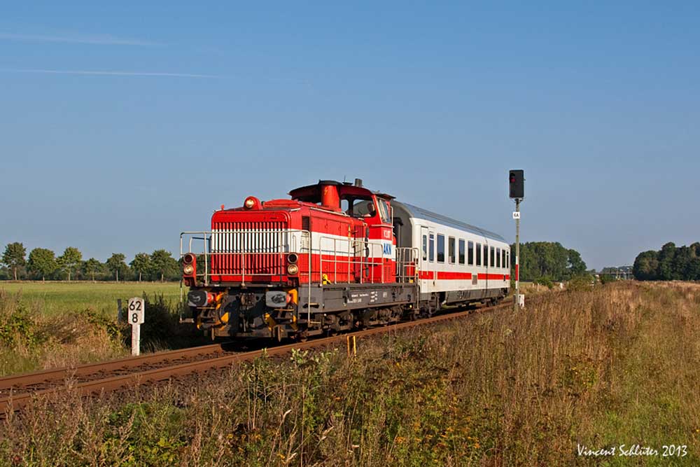 V2.017 der AKN befördert einen 1.Klasse-IC-Wagen in Ri Hamburg