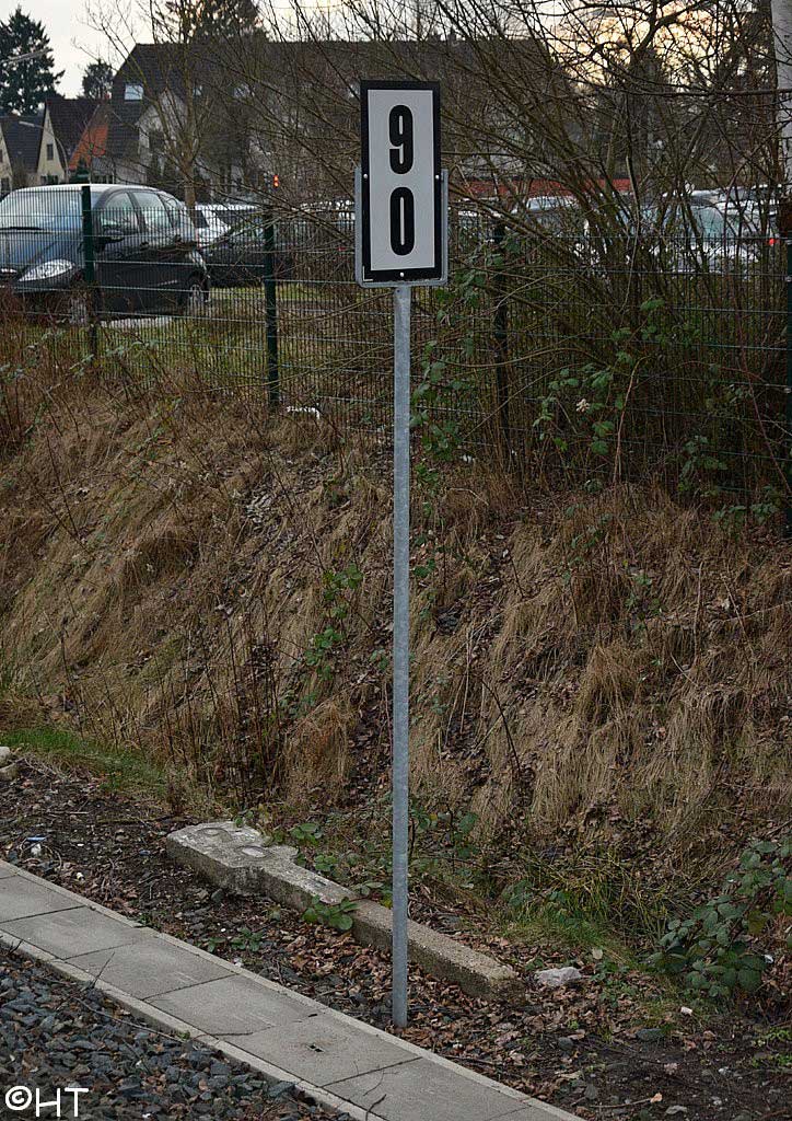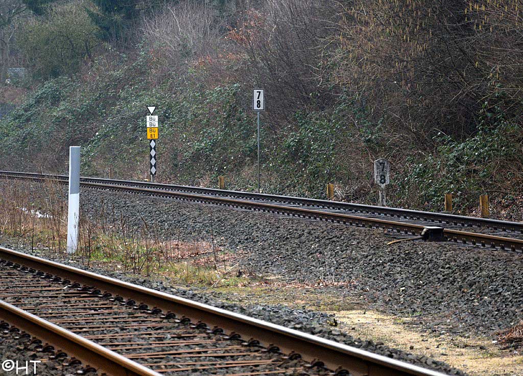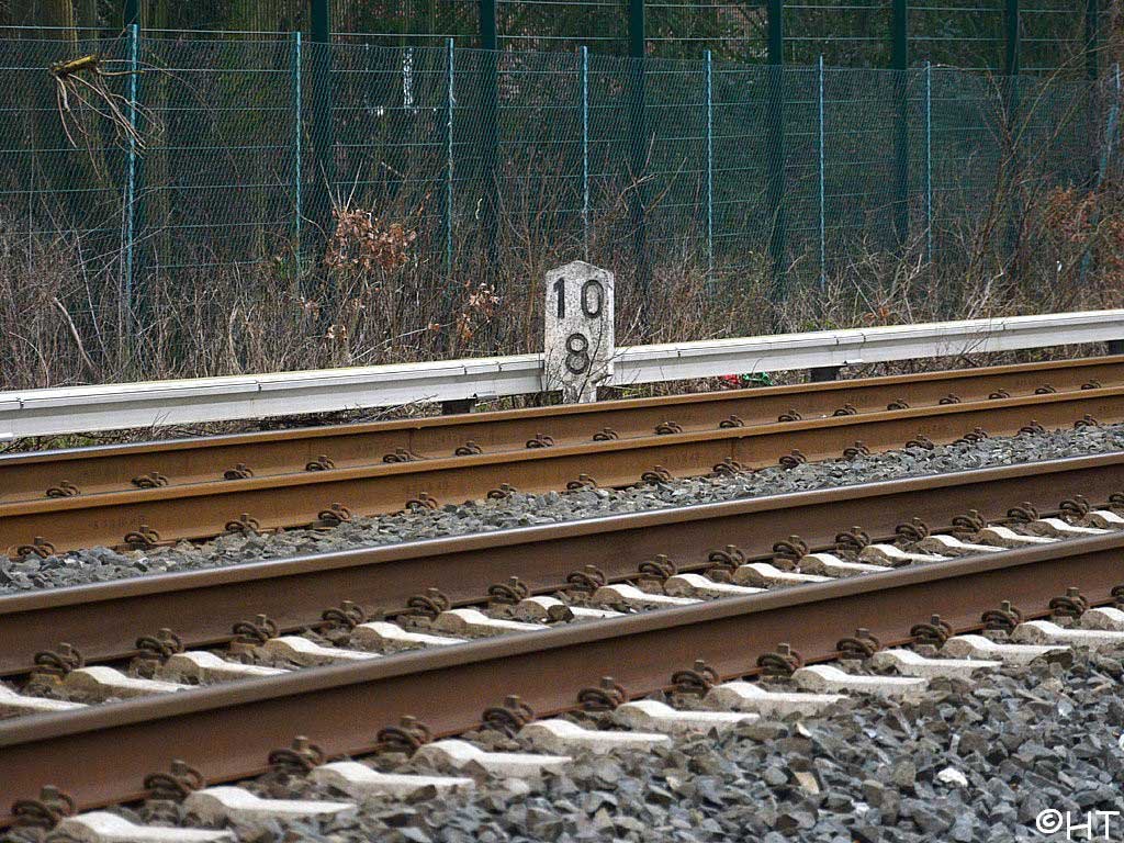 km 77,0 (Tafel); km 77,2 (Stein) und 77,4 (Stein) gehören zur Strecke nach Bad Oldesloe (linkes Gleis)