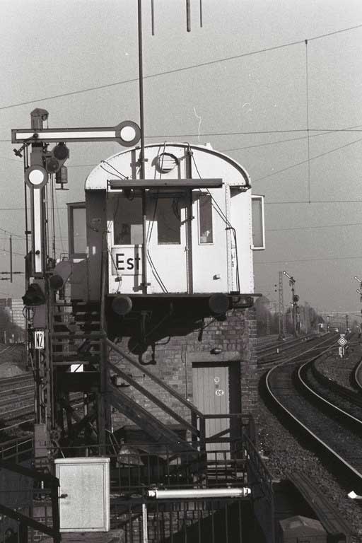 Das Behelfsstellwerk „Est“ in Hamburg-Eidelstedt war im Wagenkasten einer Donnerbüchse untergebracht und wurde 1965 für die verlängerte S-Bahn zur Elbgaustraße in Betrieb genommen.
