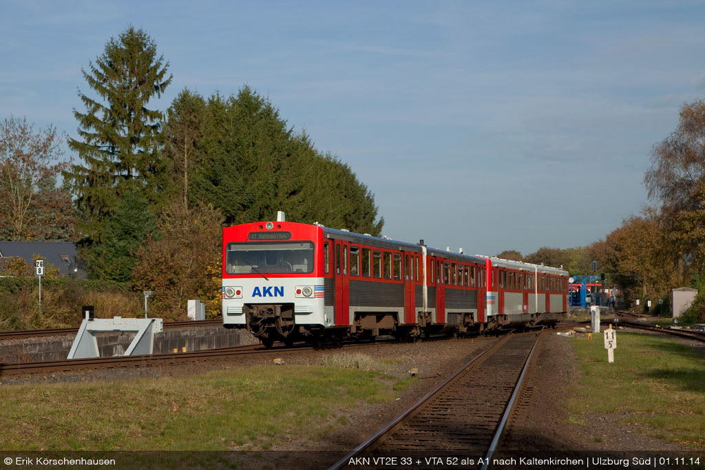 km 11,5 in Ulzburg Süd (Strecke Garstedt 1,5 - Ulzburg Süd 11,7) - AKN VT2E 33 und VTA 52