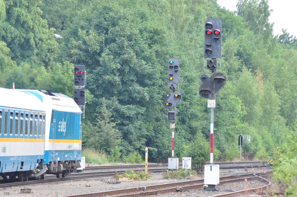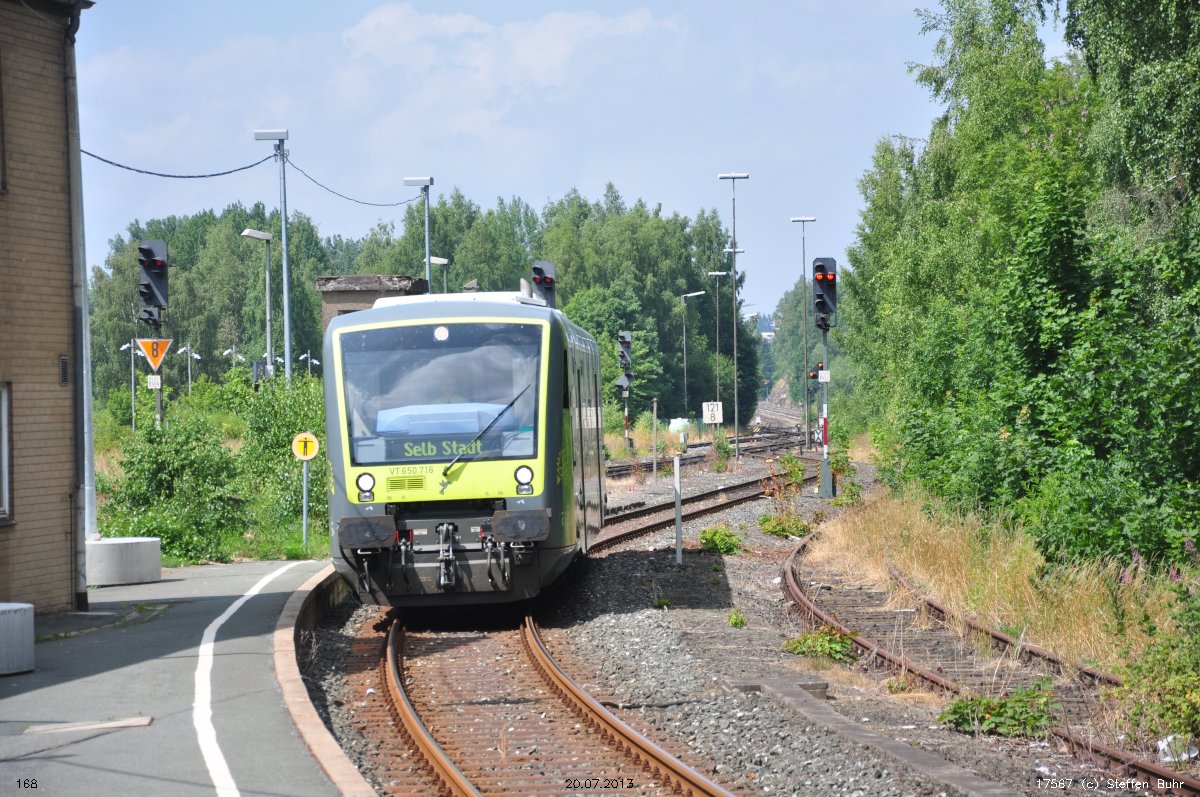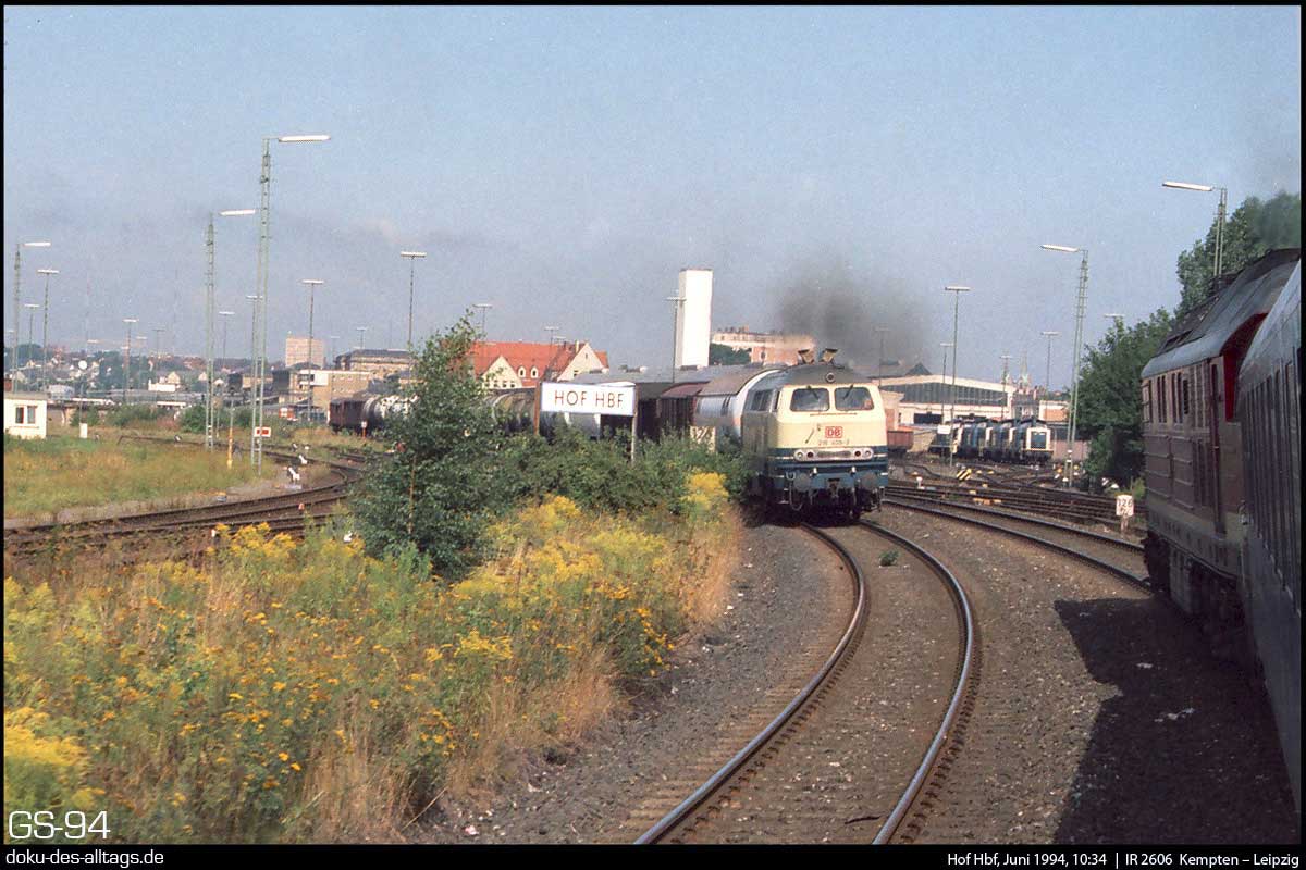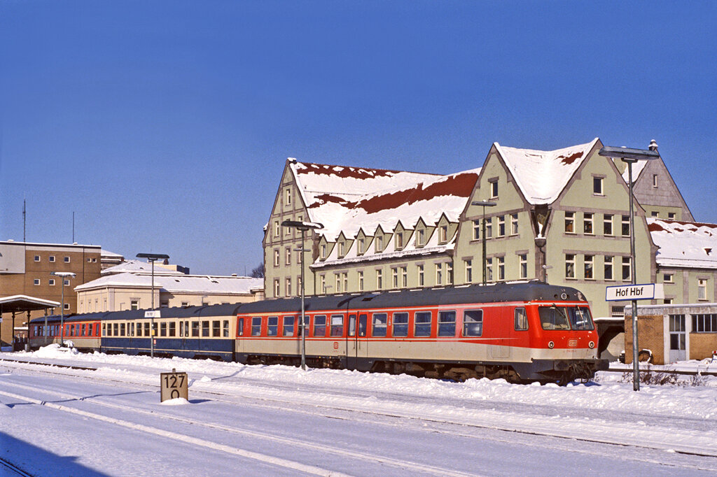 Hof Hbf | 127,23 | km 164,75 der Strecke Leipzig Bayerischer Bf 0,12 - Altenburg Hbf 38,63 - Werdau 73,81 - Reichenbach (Vogtl) 90,96 - Plauen ob Bf 116,11 - Grenze DDR/BRD 151,699 - Hof Hbf 164,75 |