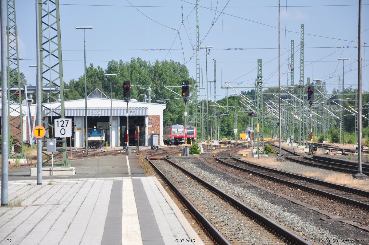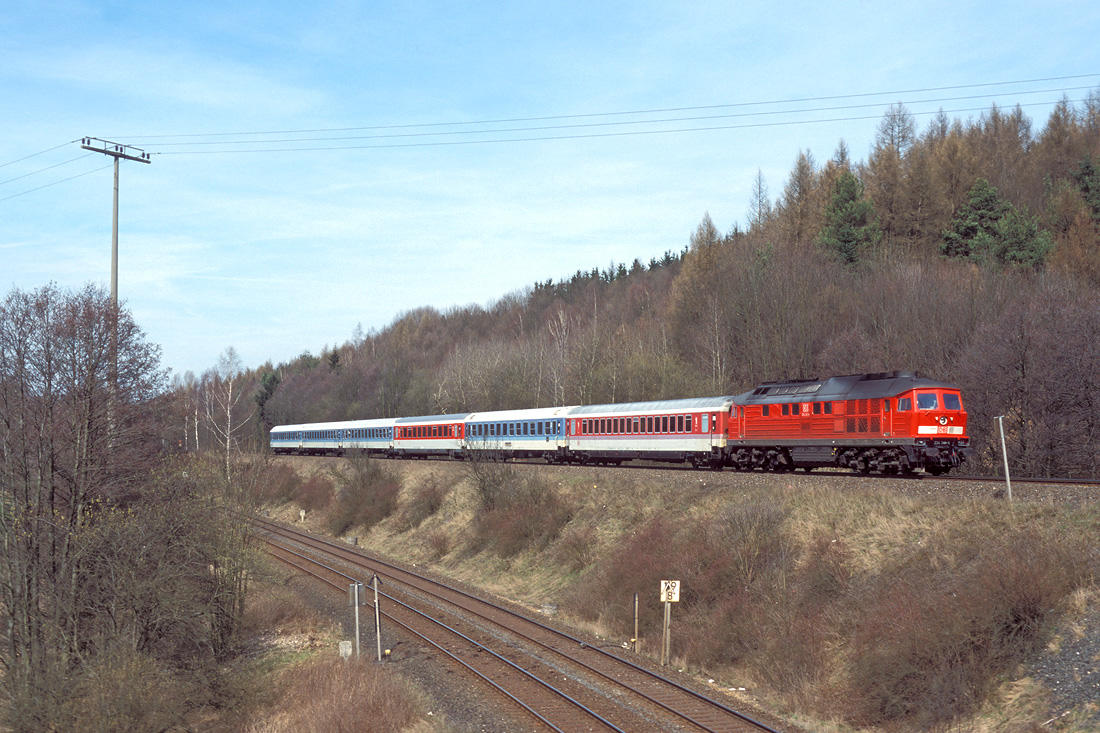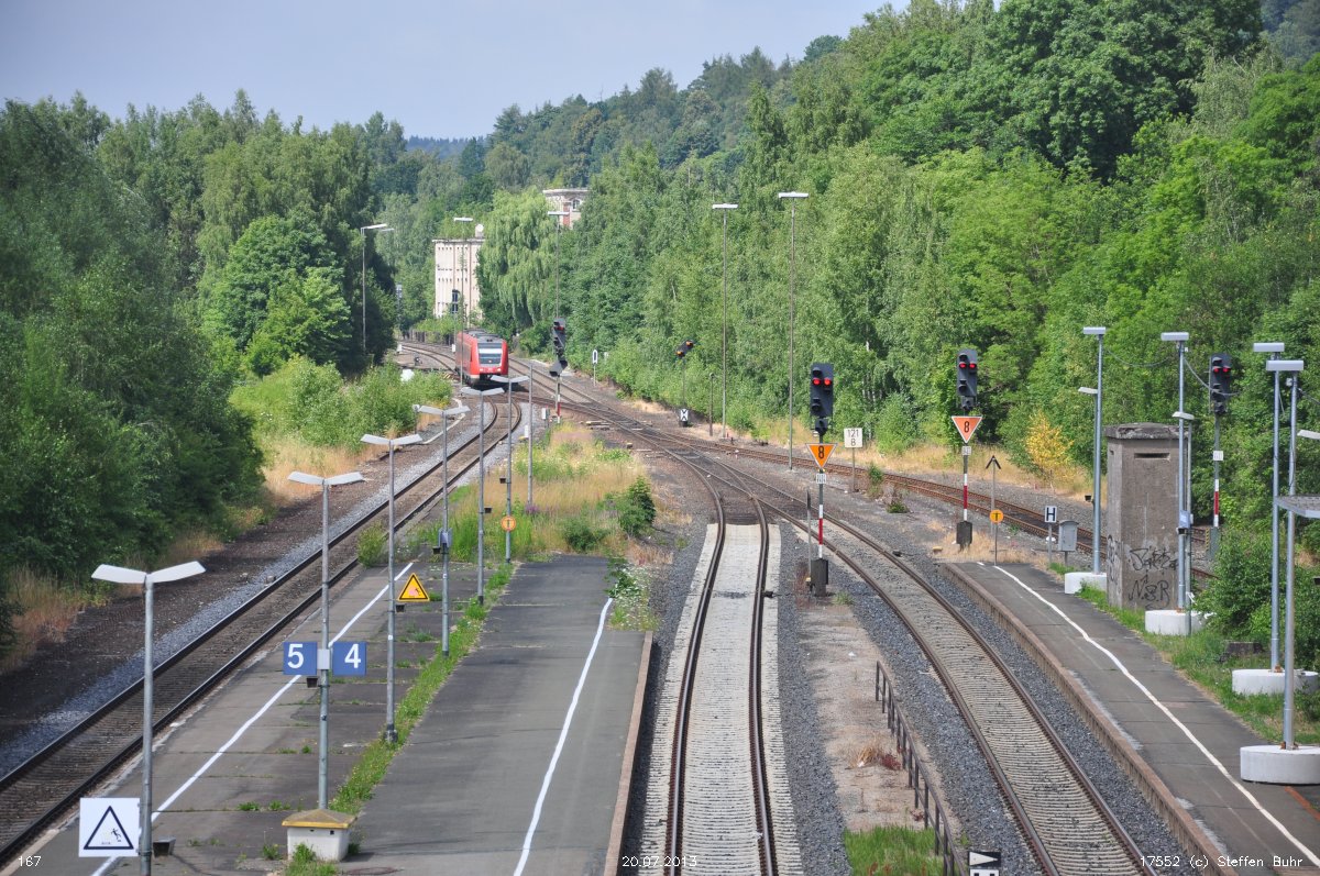 Hof Hbf | 127,23 | km 164,75 der Strecke Leipzig Bayerischer Bf 0,12 - Altenburg Hbf 38,63 - Werdau 73,81 - Reichenbach (Vogtl) 90,96 - Plauen ob Bf 116,11 - Grenze DDR/BRD 151,699 - Hof Hbf 164,75 |