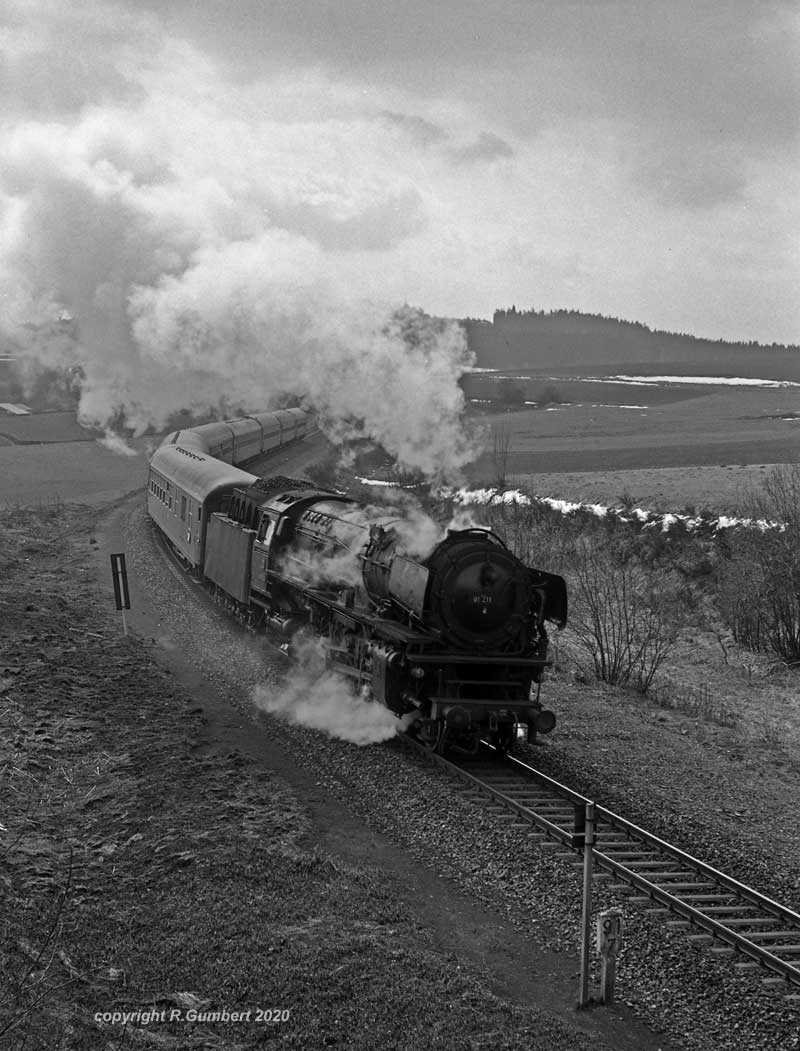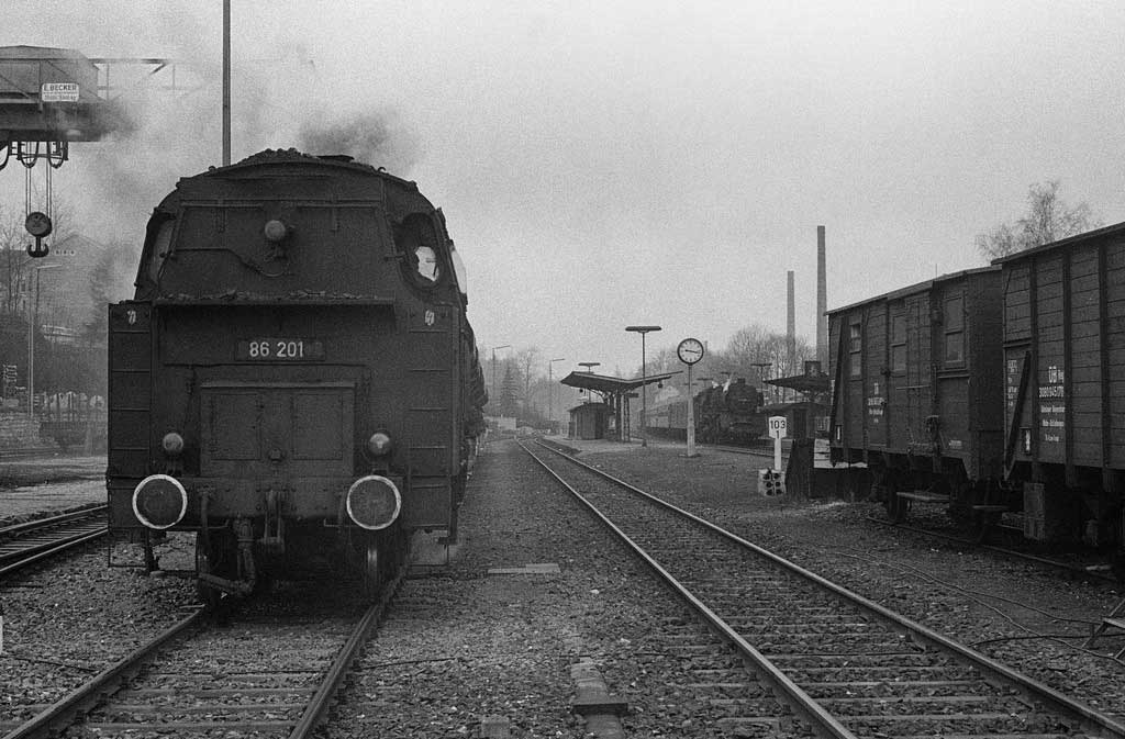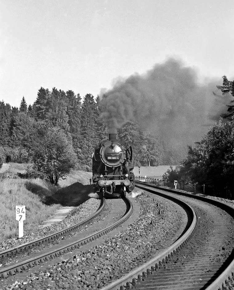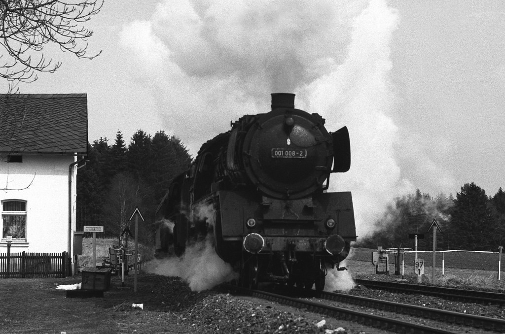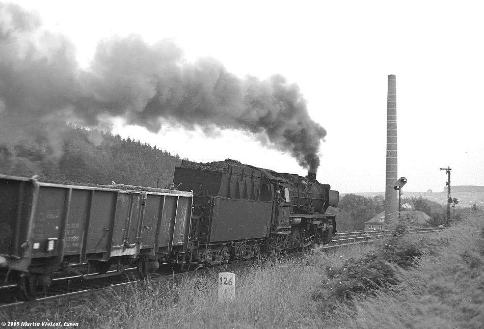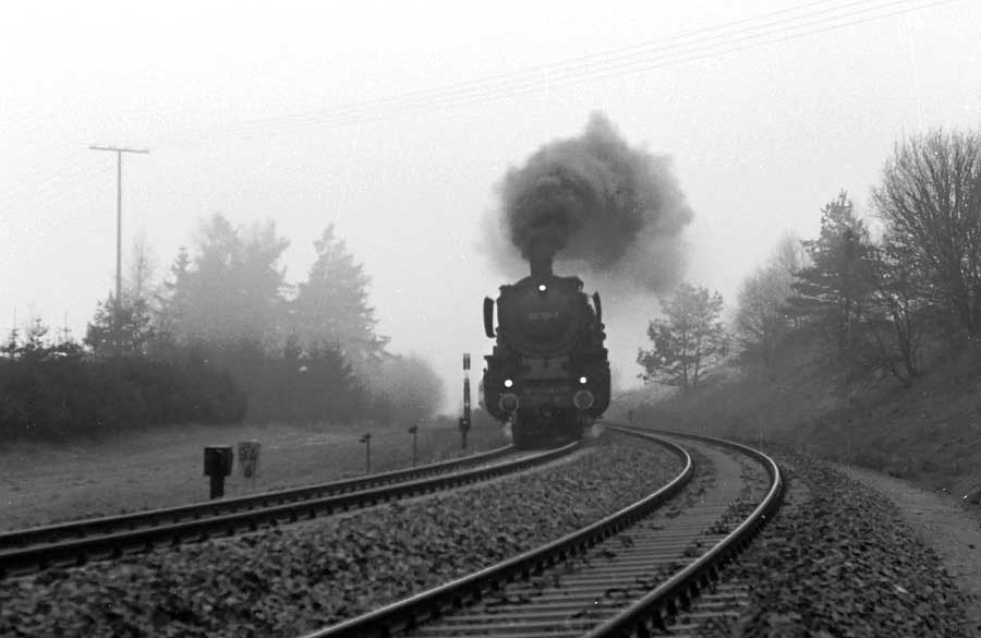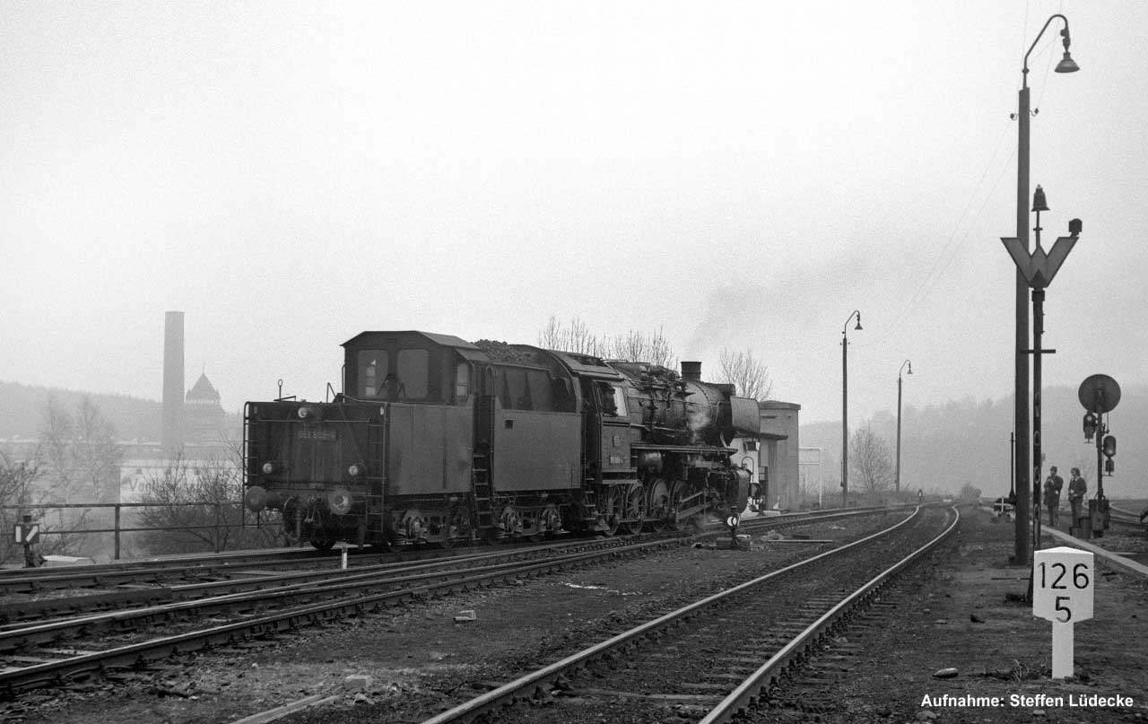 und ganz links ist im qualmigen Dunst gerade noch 052 475 vor dem N 3419 nach Selb Stadt erkennbar.