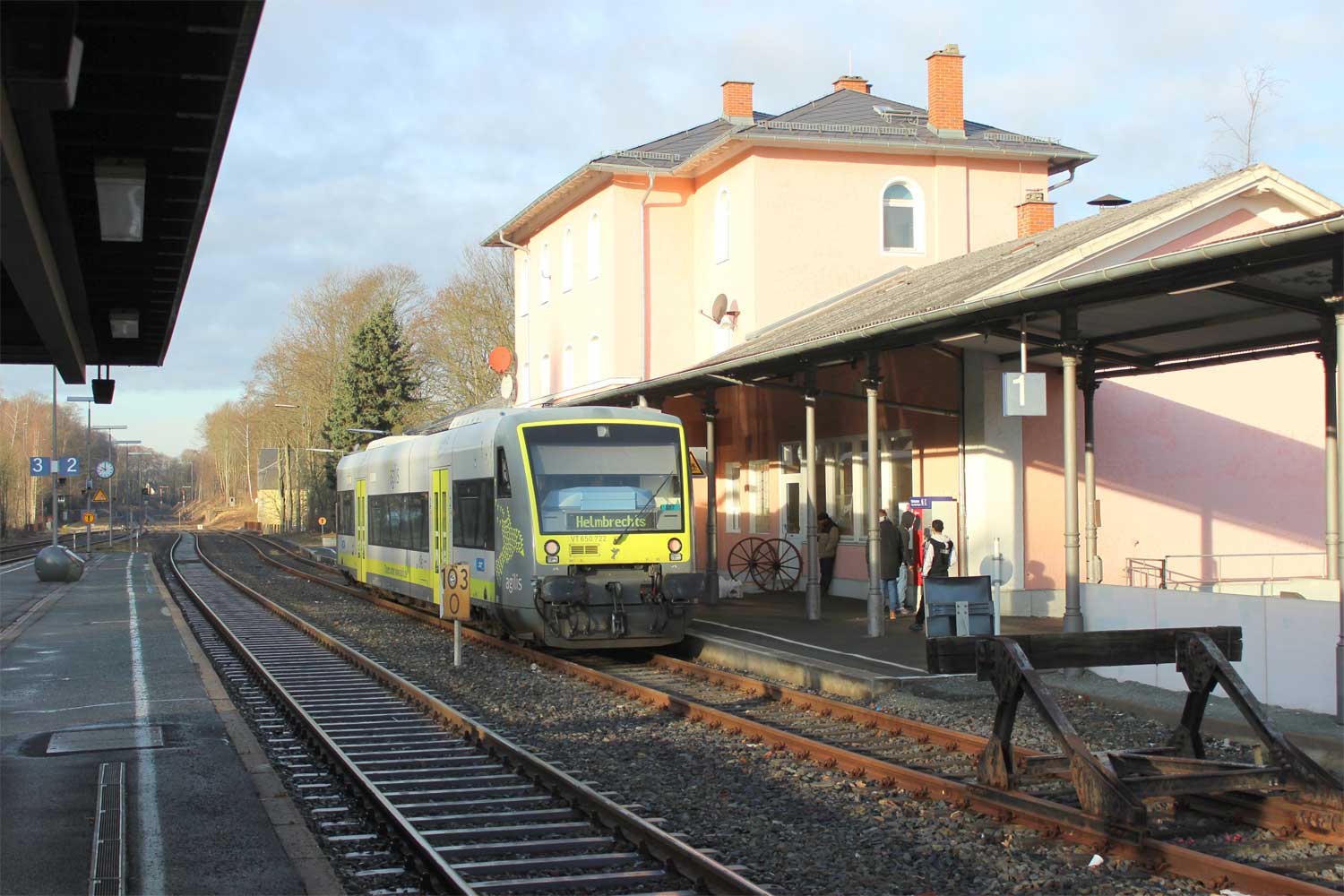 km 0,0 der Strecke Münchberg 0,0 - Helmbrechts 9,31 (= km 10,6 - Selbitz 0,0 ) | ||