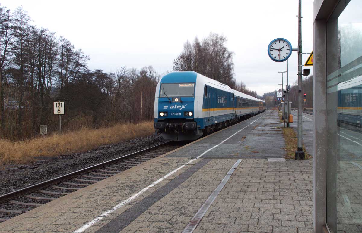 km 54,50 der Strecke Cheb (Eger) 0,0 - Aš (Asch) 27,55 - Grenze Tschechien/Deutschland 29,601 - Selb-Plößberg 34,82 - Oberkotzau 54,50 | ||