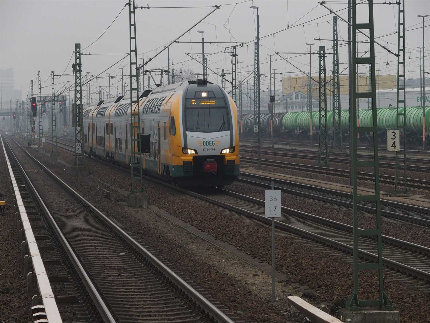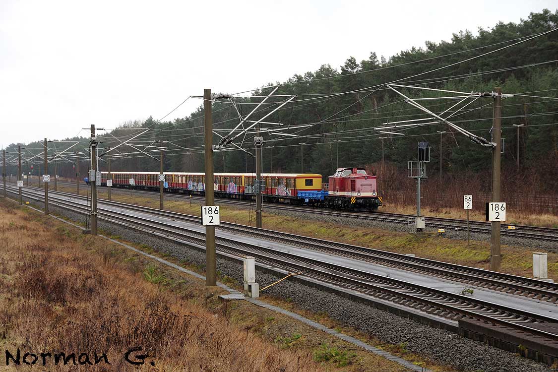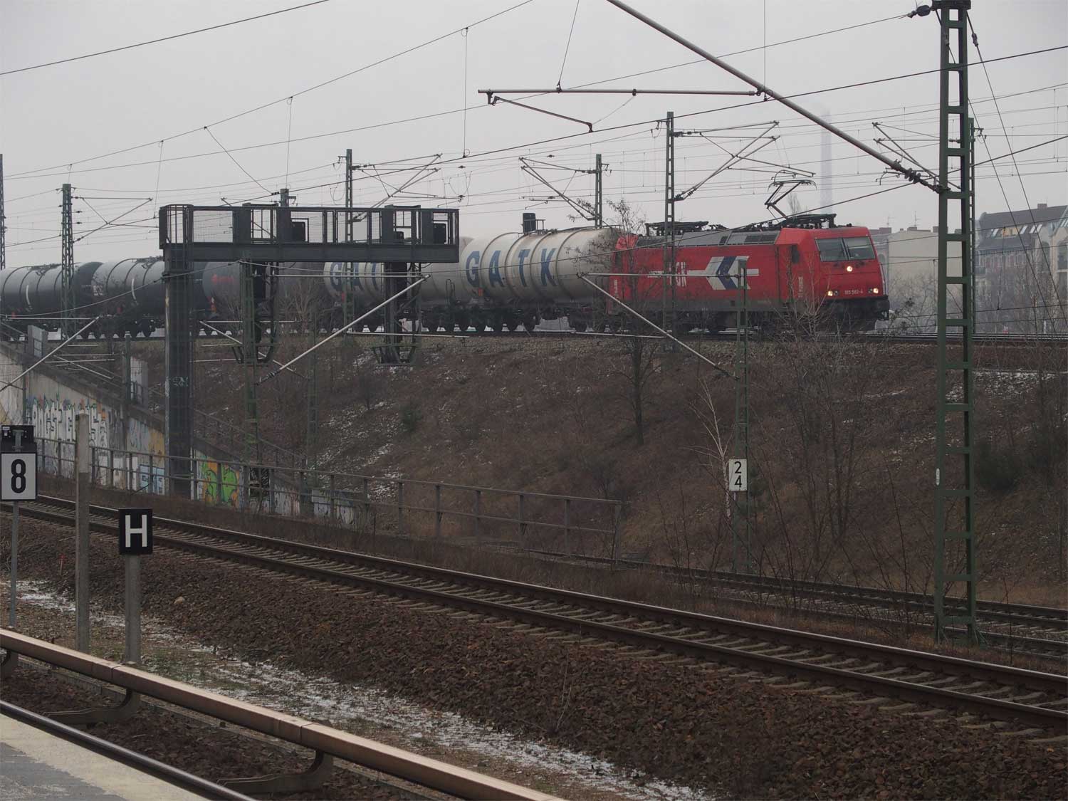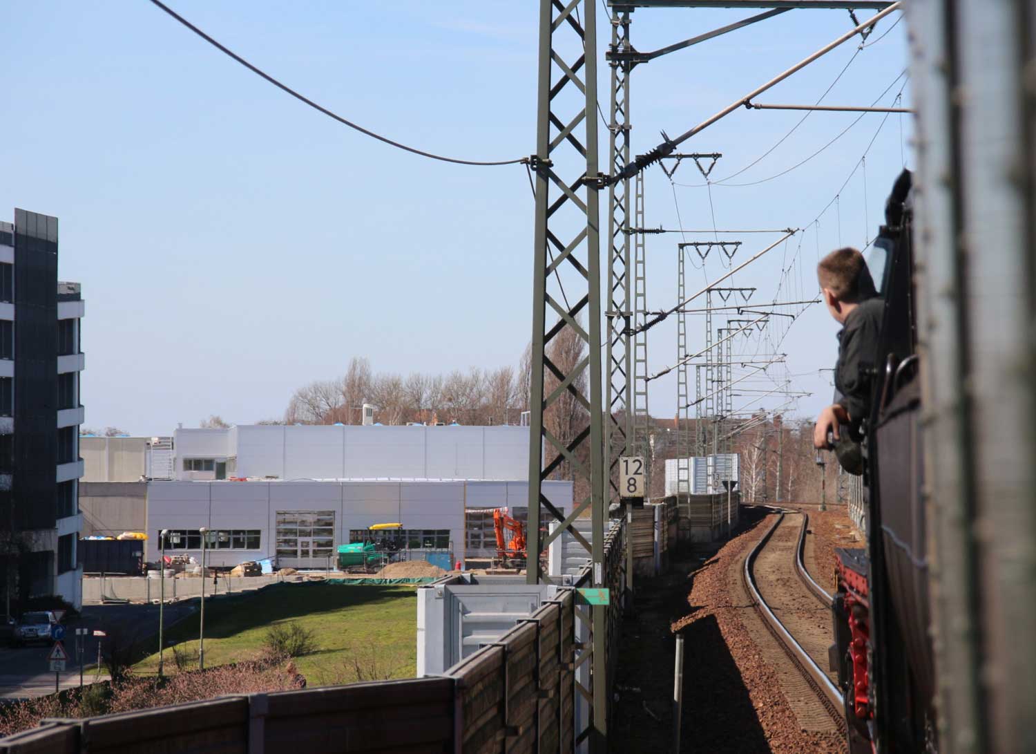 Der Zug befindet sich auf der Strecke nach Hildesheim und quert gerade das Gleis von Berlin Lehrter Bf.