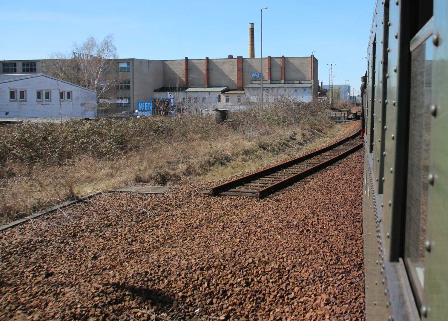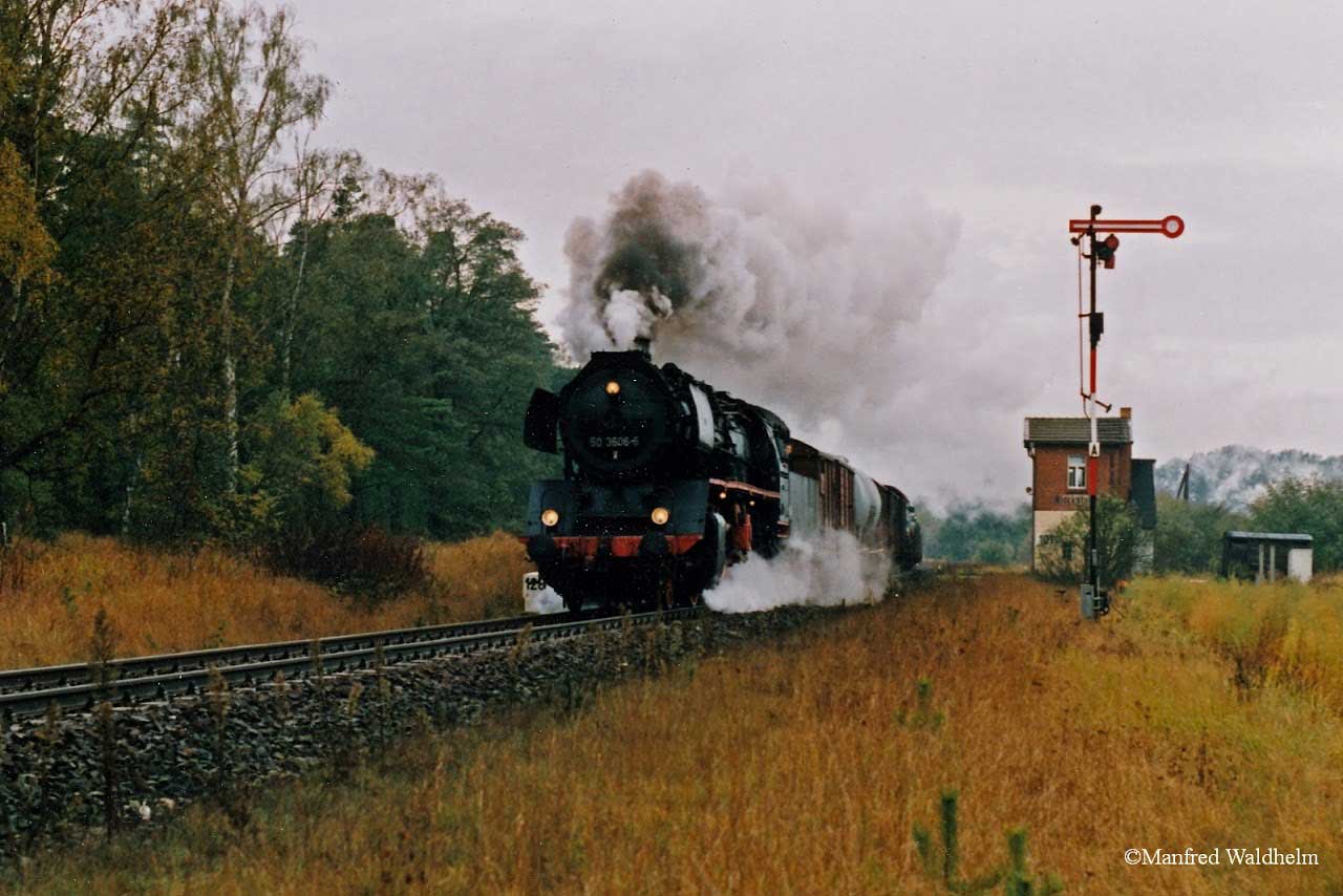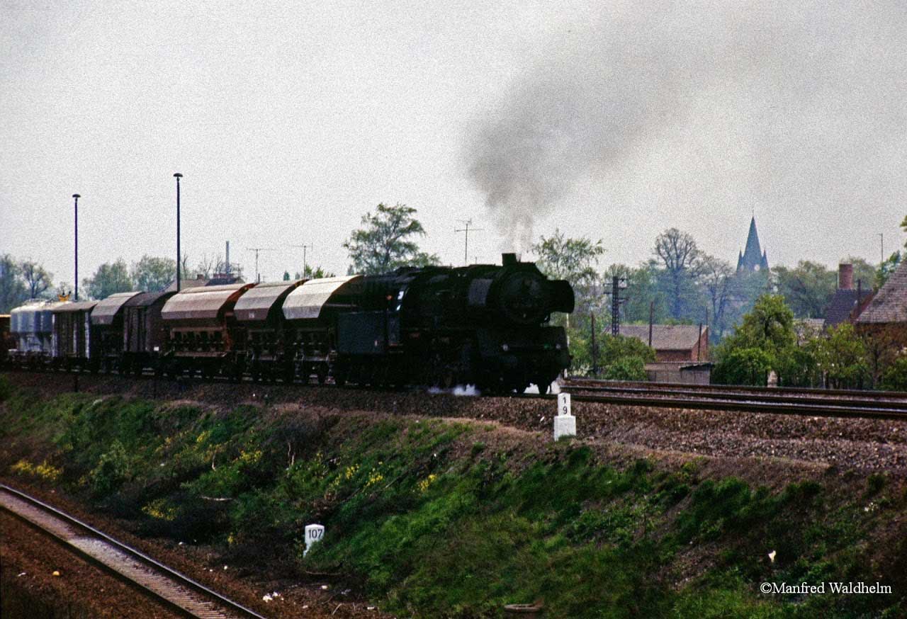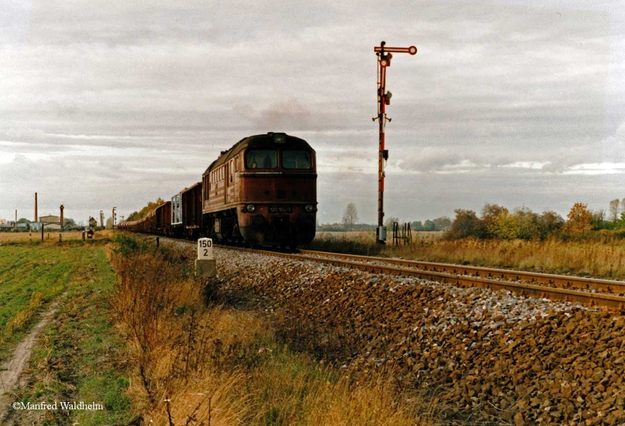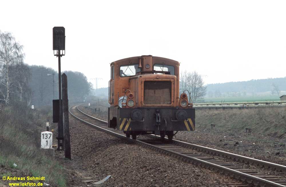 Rechts neben der Lok ist km 16,3 zu erkennen, der zur Strecke nach Braunschweig gehört.