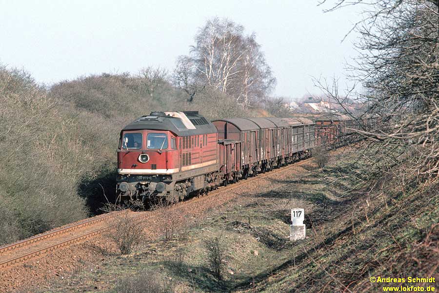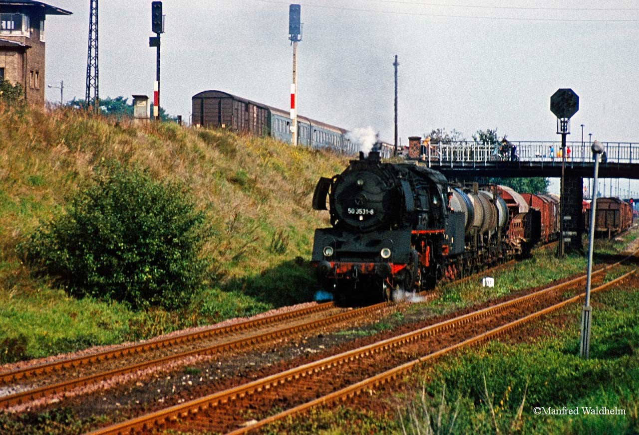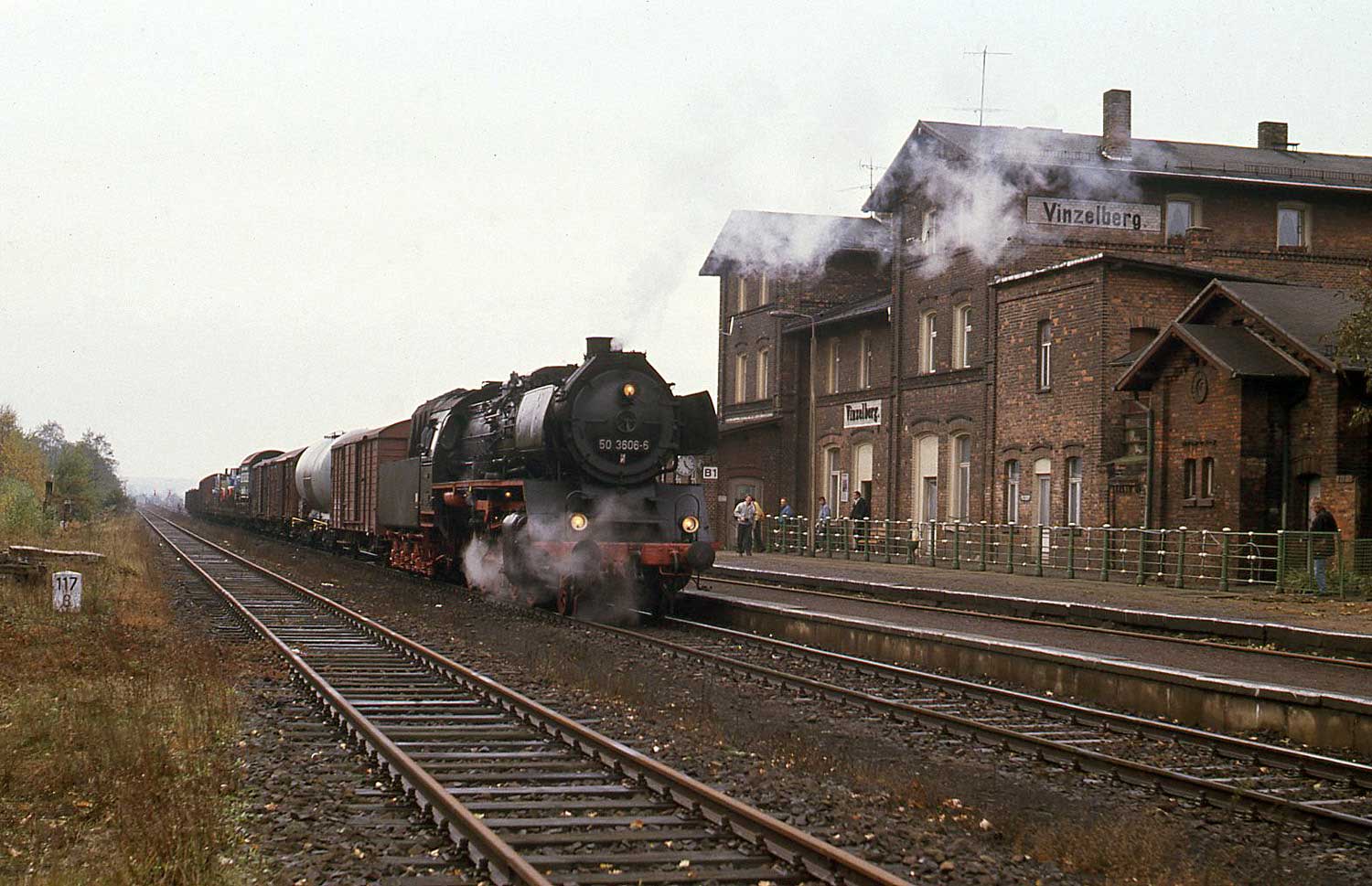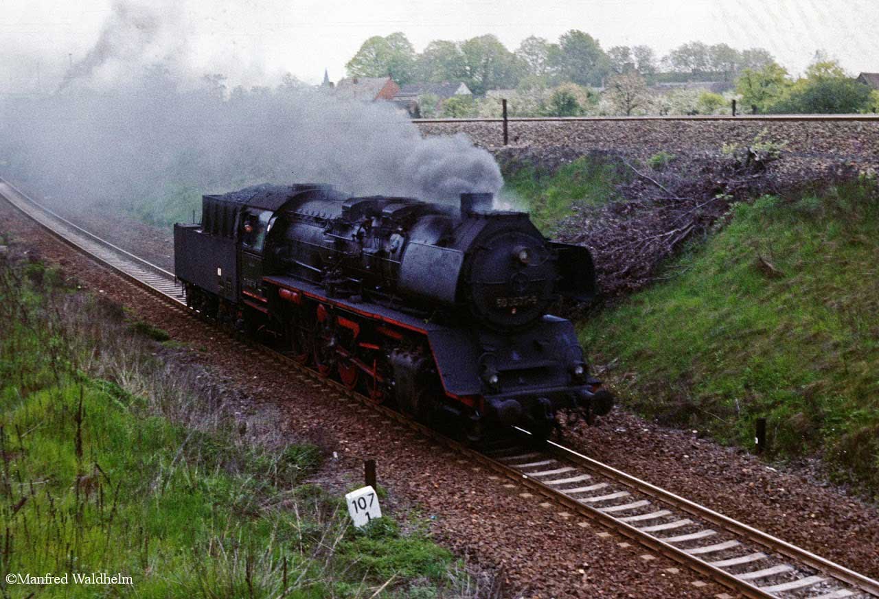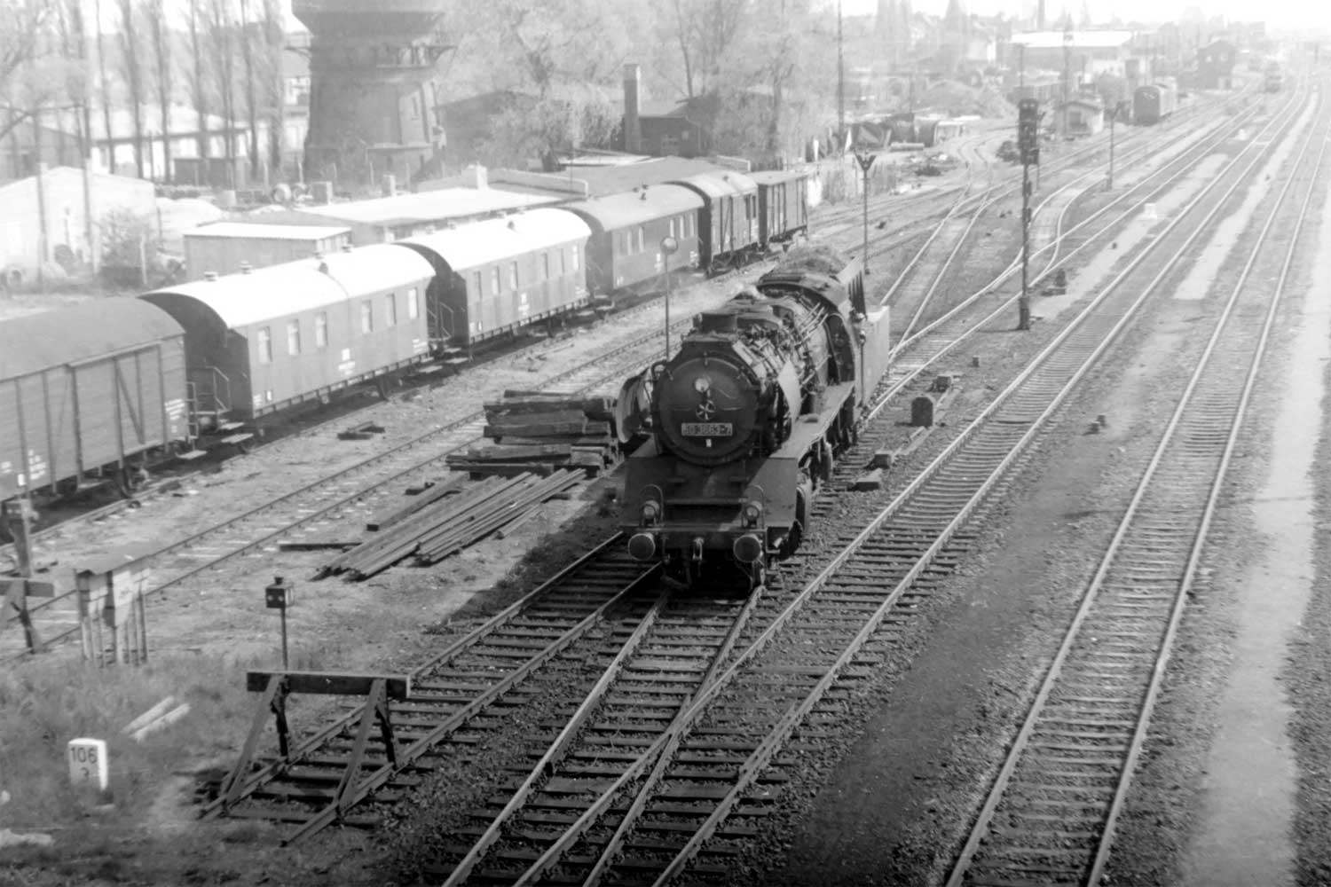 Rechts neben der Lok ist km 16,3 zu erkennen, der zur Strecke nach Braunschweig gehört.