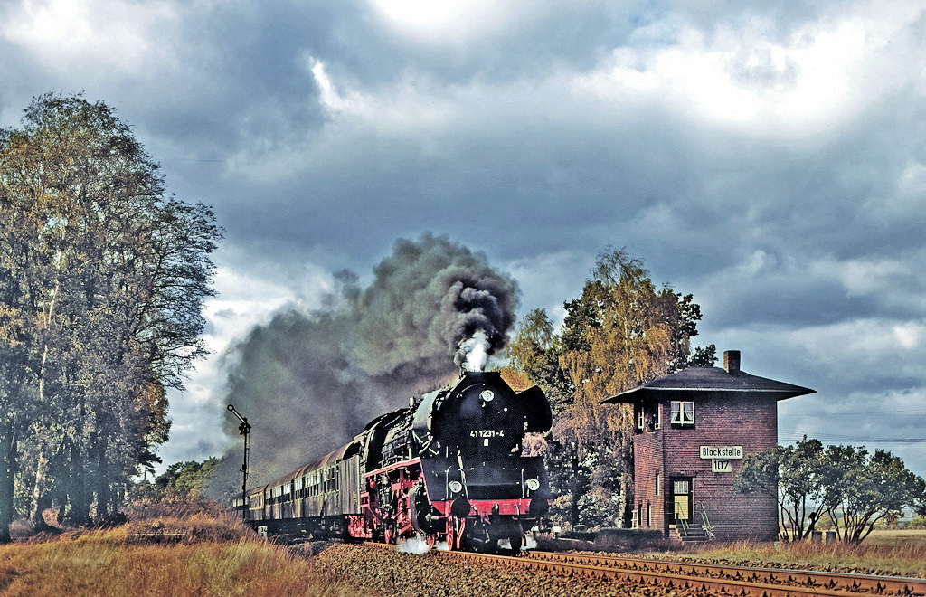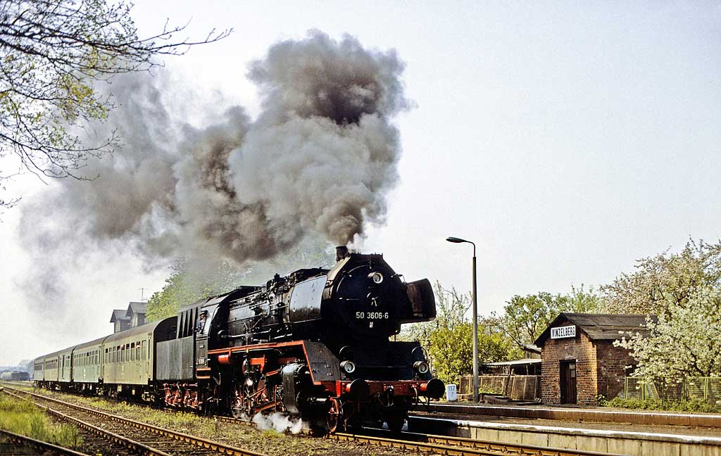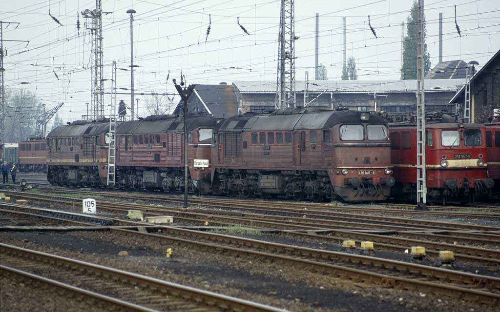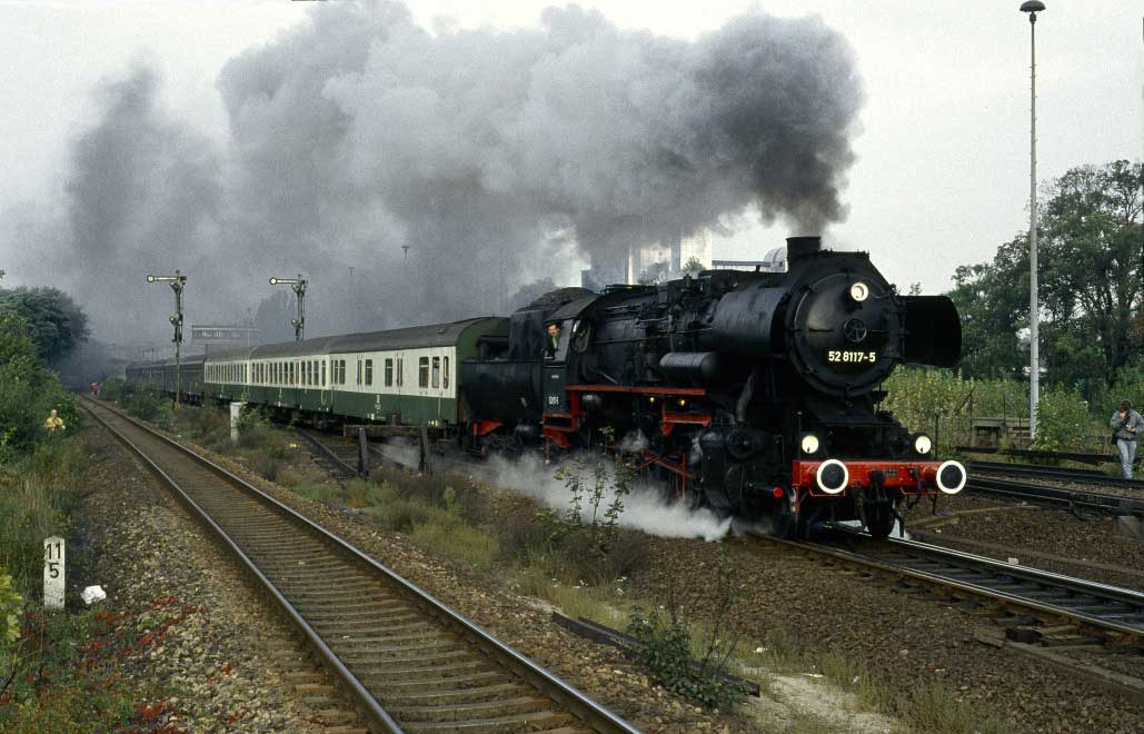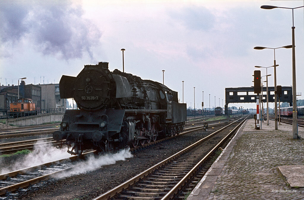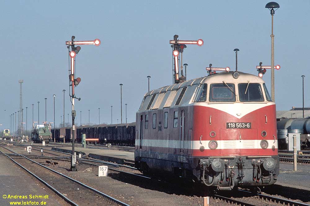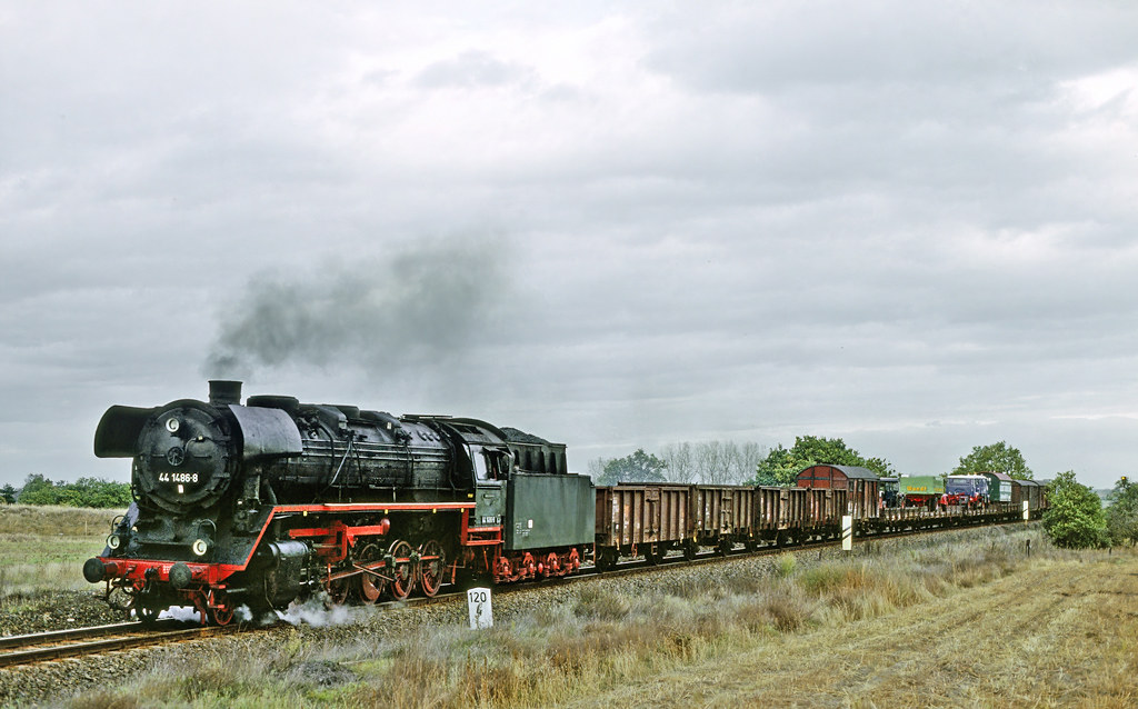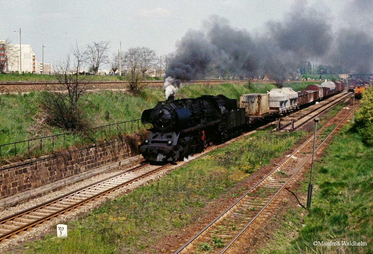 Rechts neben der Lok ist km 16,3 zu erkennen, der zur Strecke nach Braunschweig gehört.