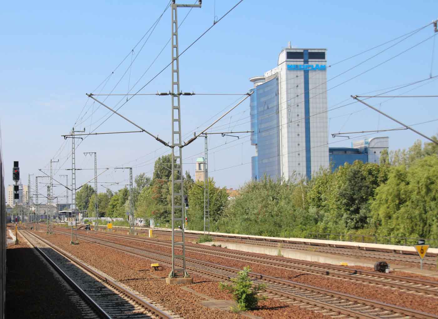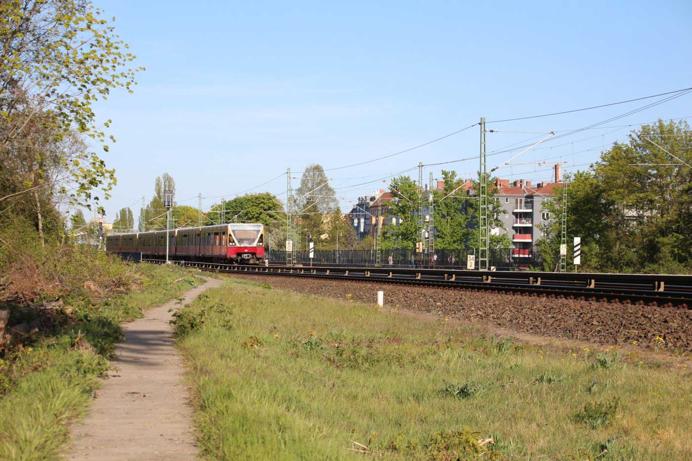 Dazwischen liegen die beiden Gleise der Strecke Berlin Ostbahnhof 0,0 - Berlin-Spandau, W4, km 20,560 (6109 - Stadtbahnast)