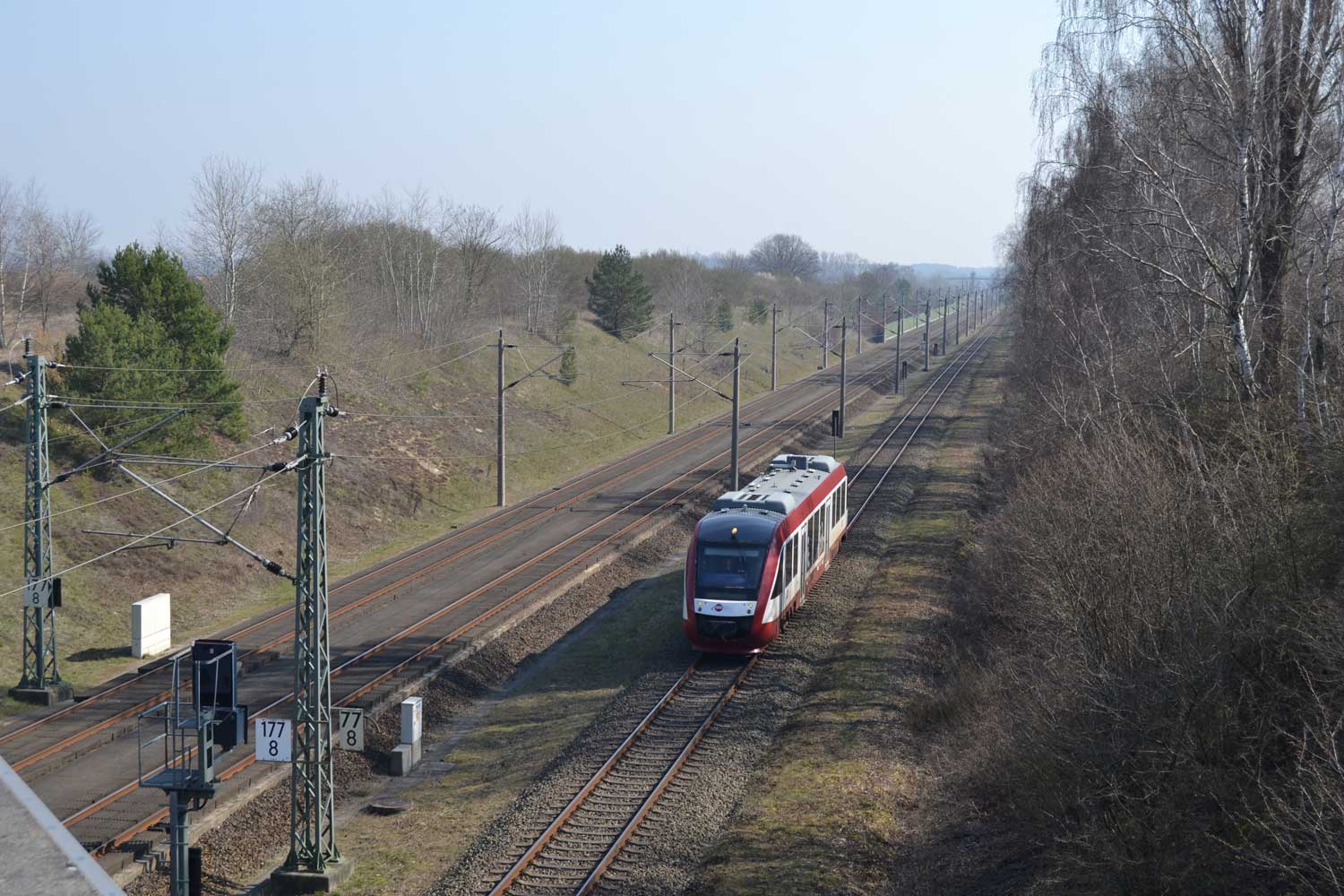 Der Zug selber befindet sich auf einem Verbindungsgleis zur Strecke 1775