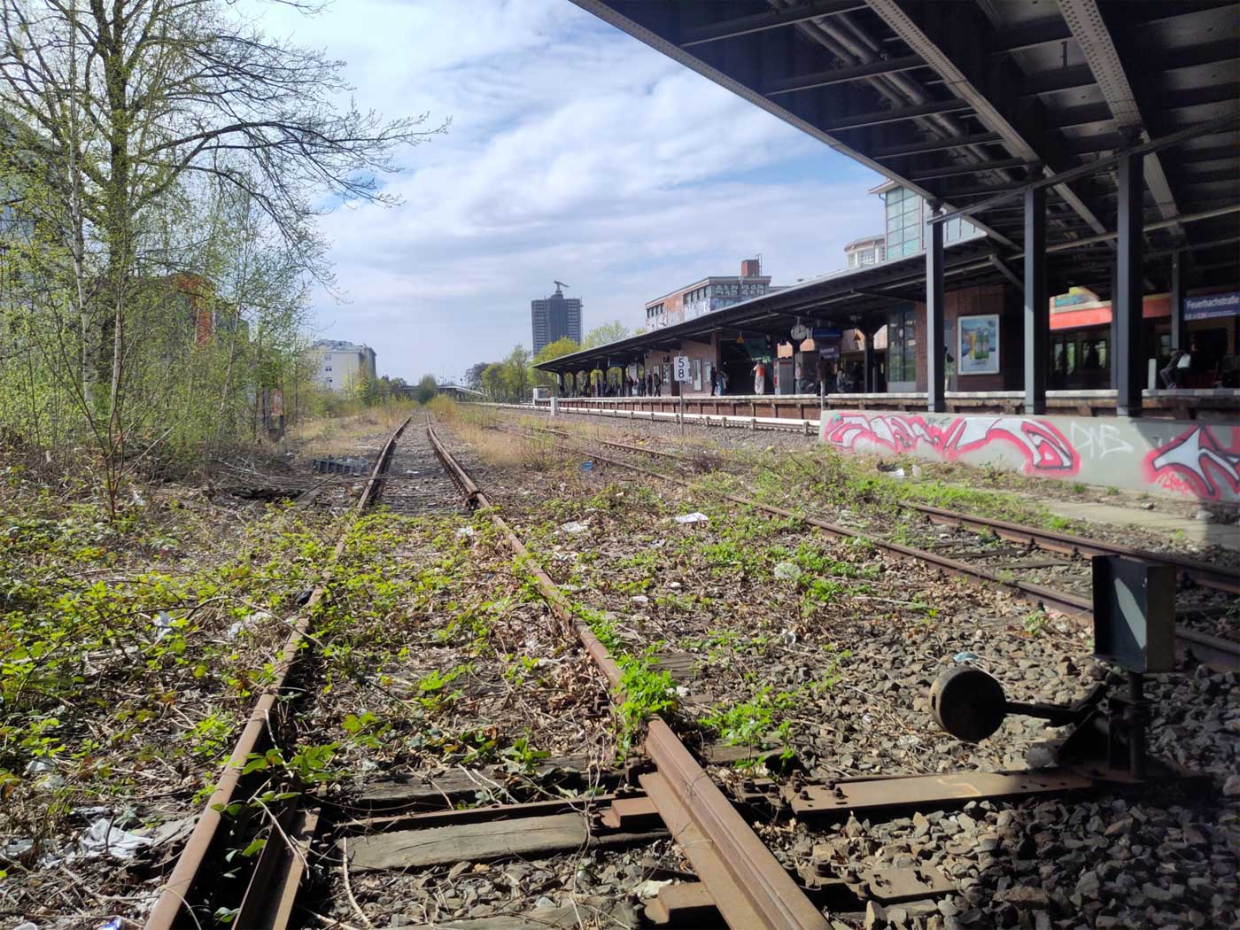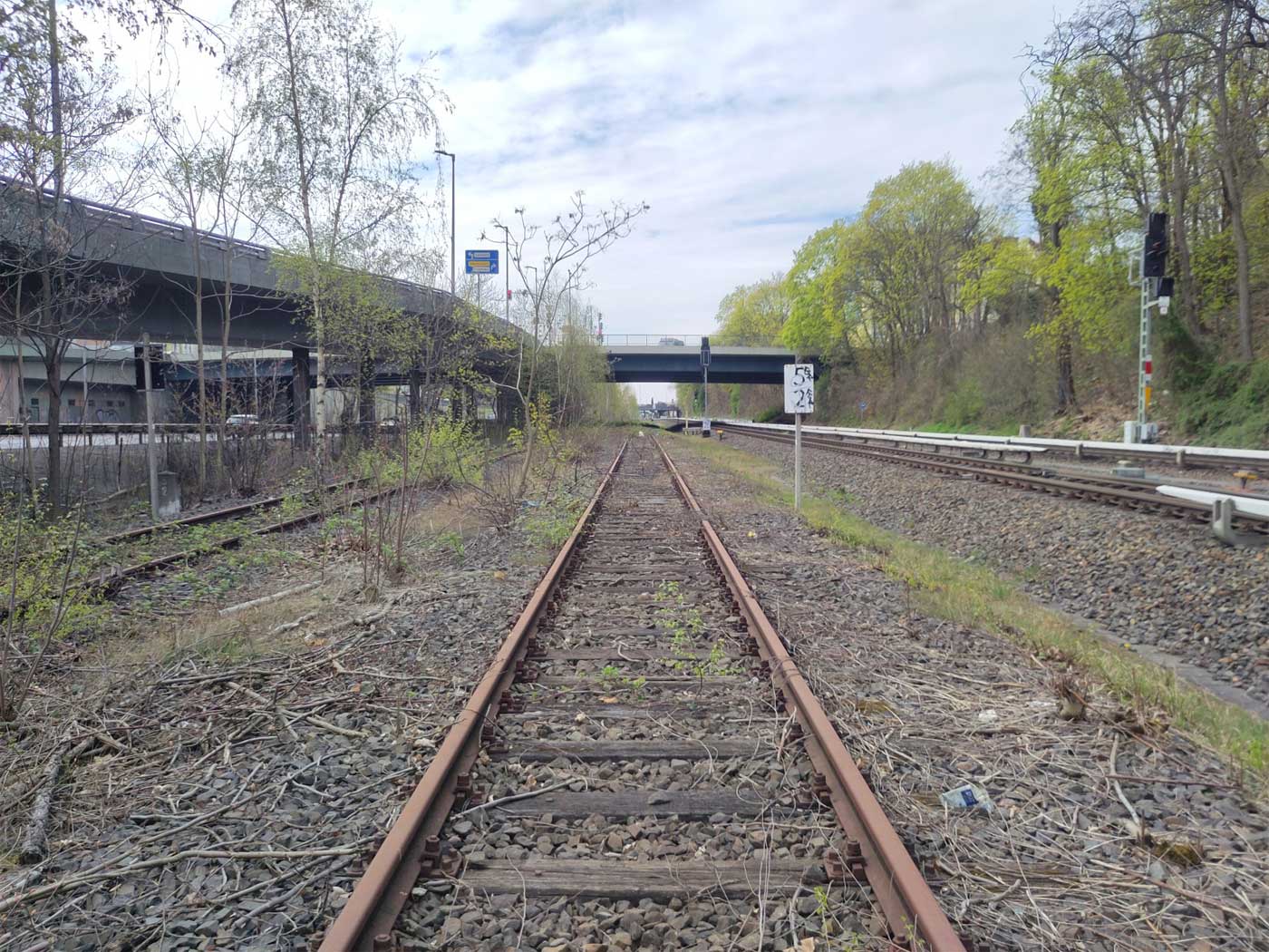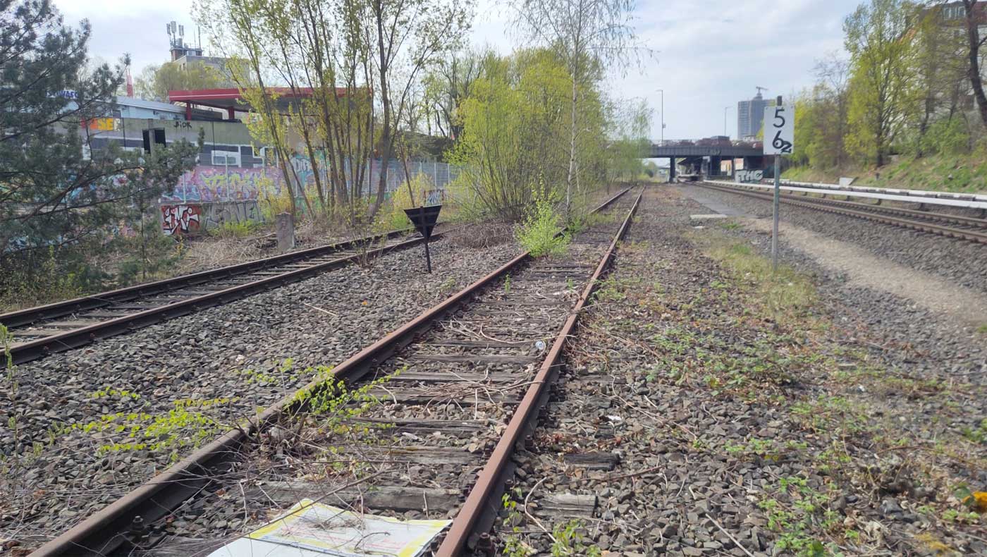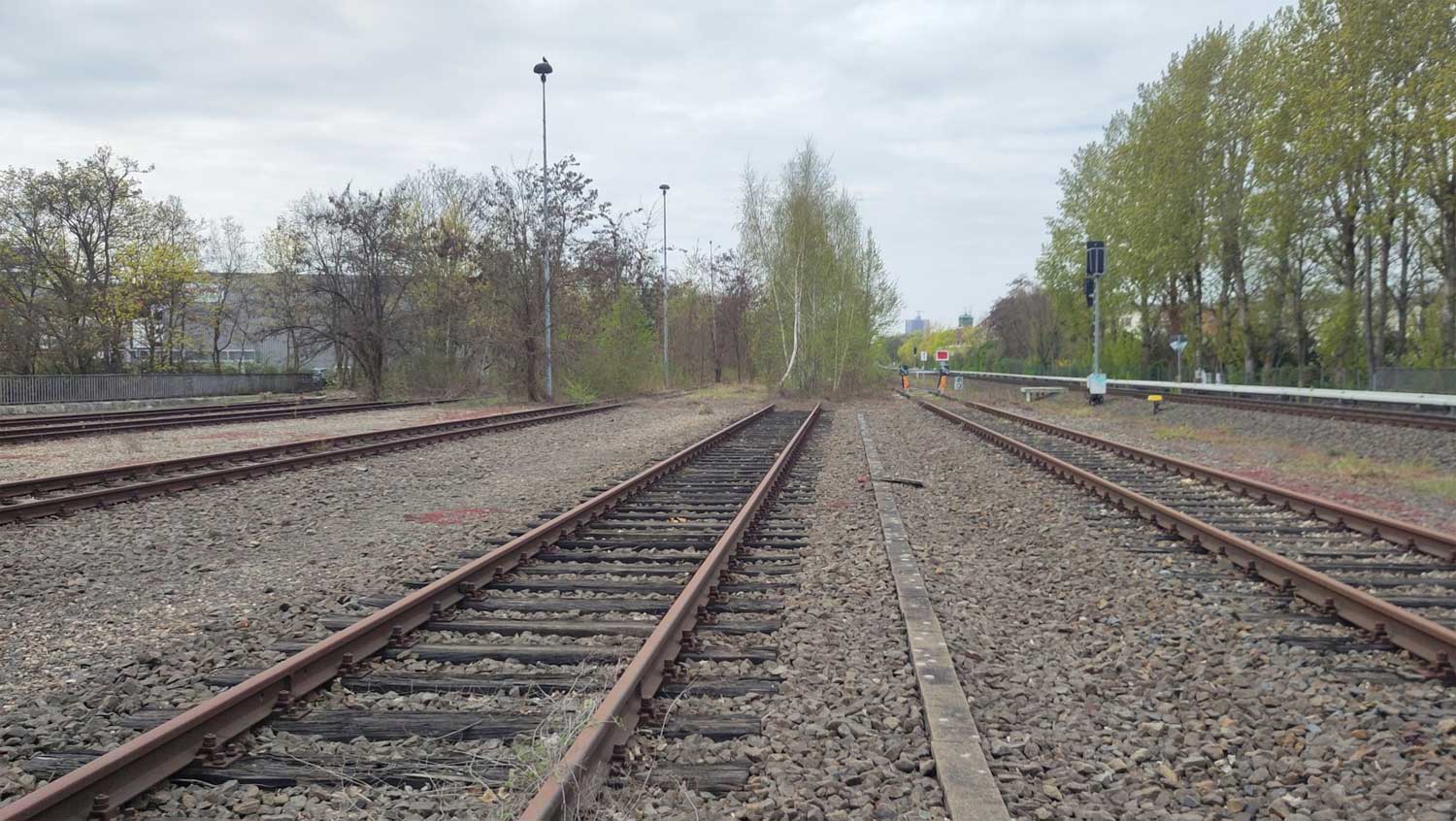 Das im Hintergrund höher liegende Gleis gehört zur Strecke 6184
