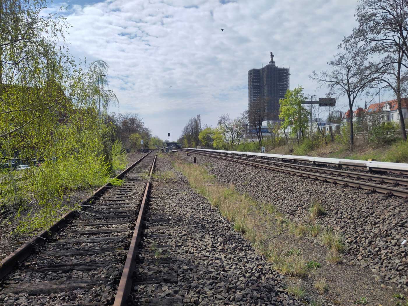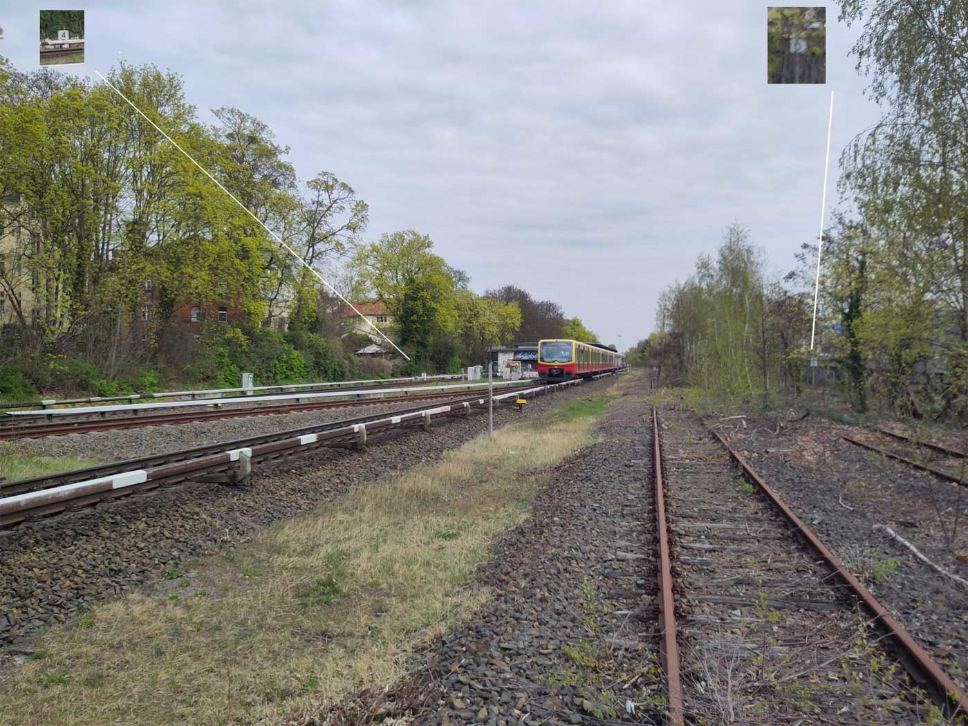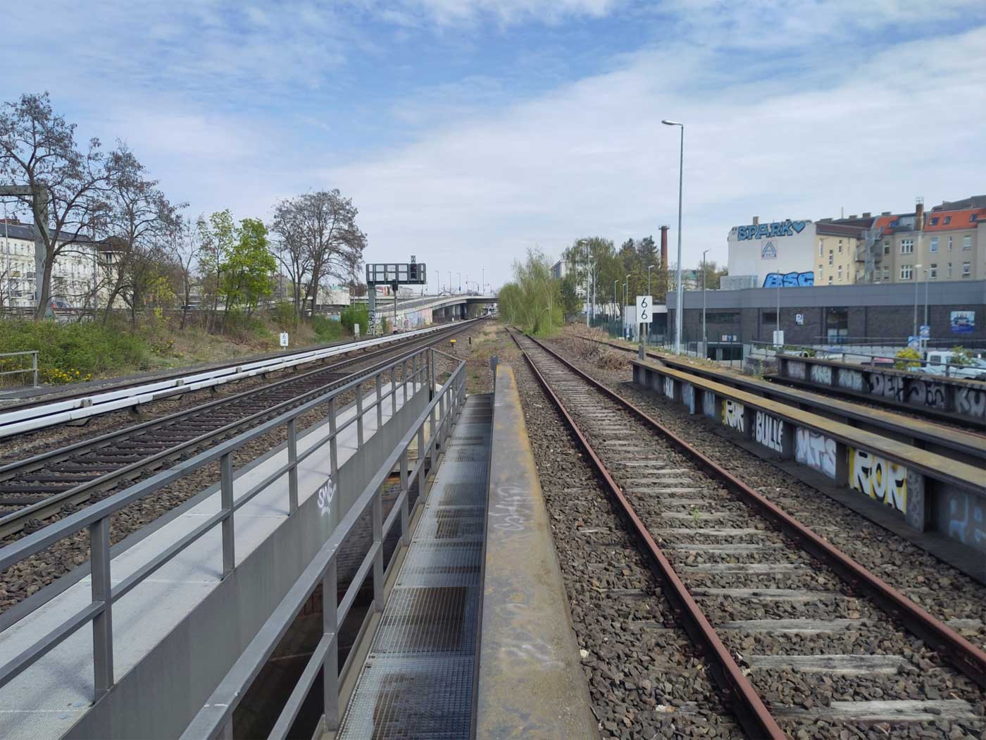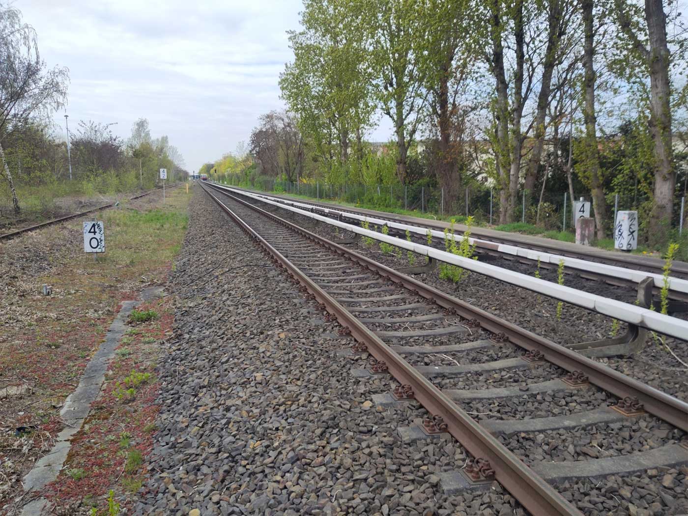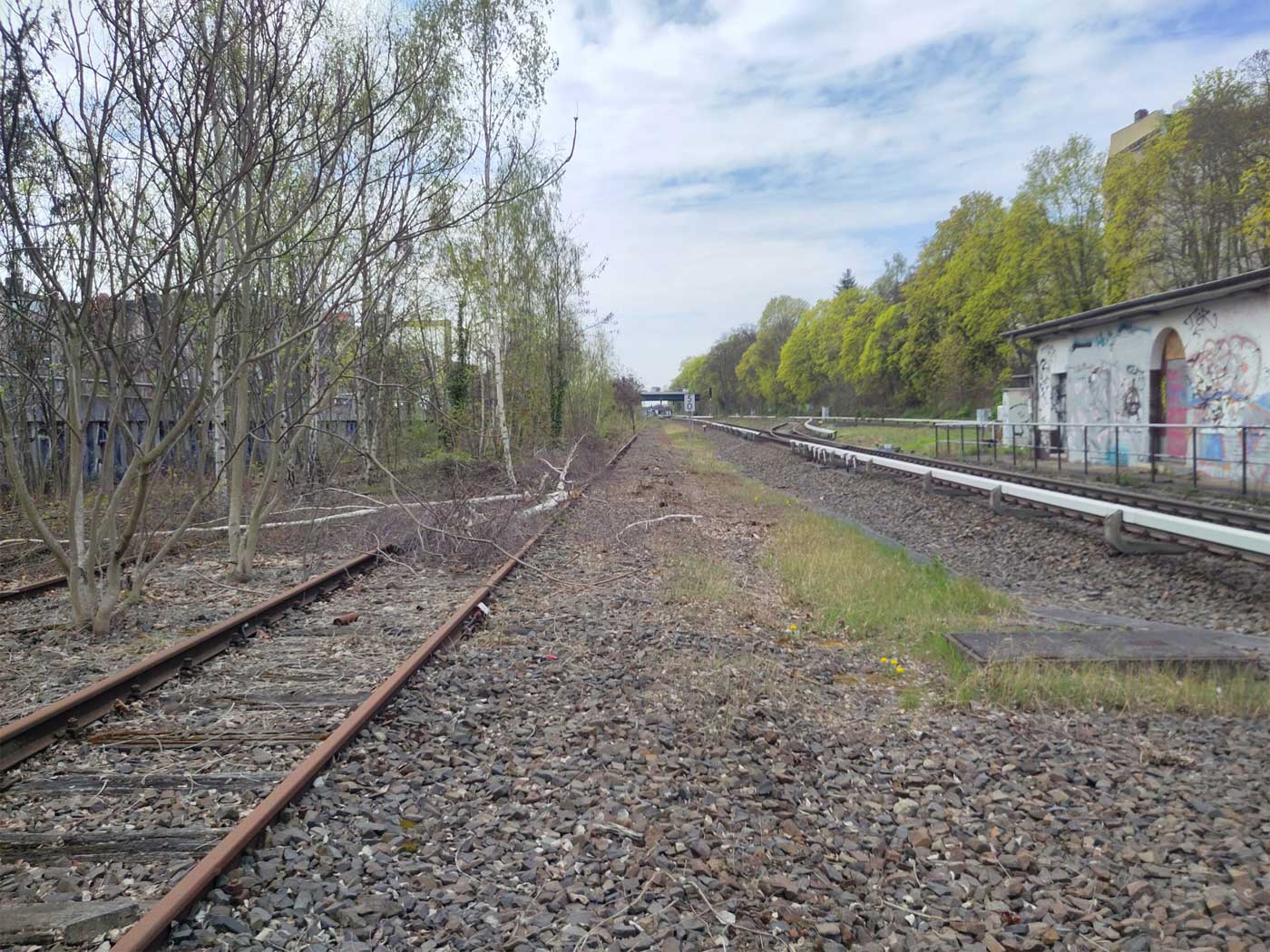 Links die beiden Gleise der Wannseebahn