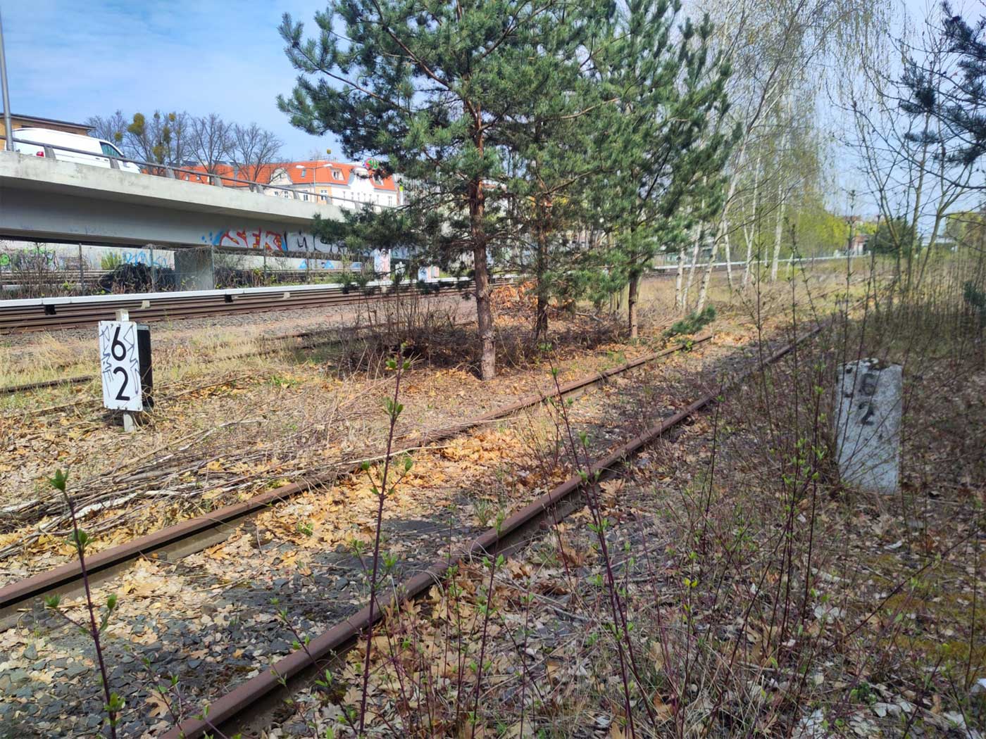 km 18,7 (rechts im Buschwerk) gehört zur Wannseebahn