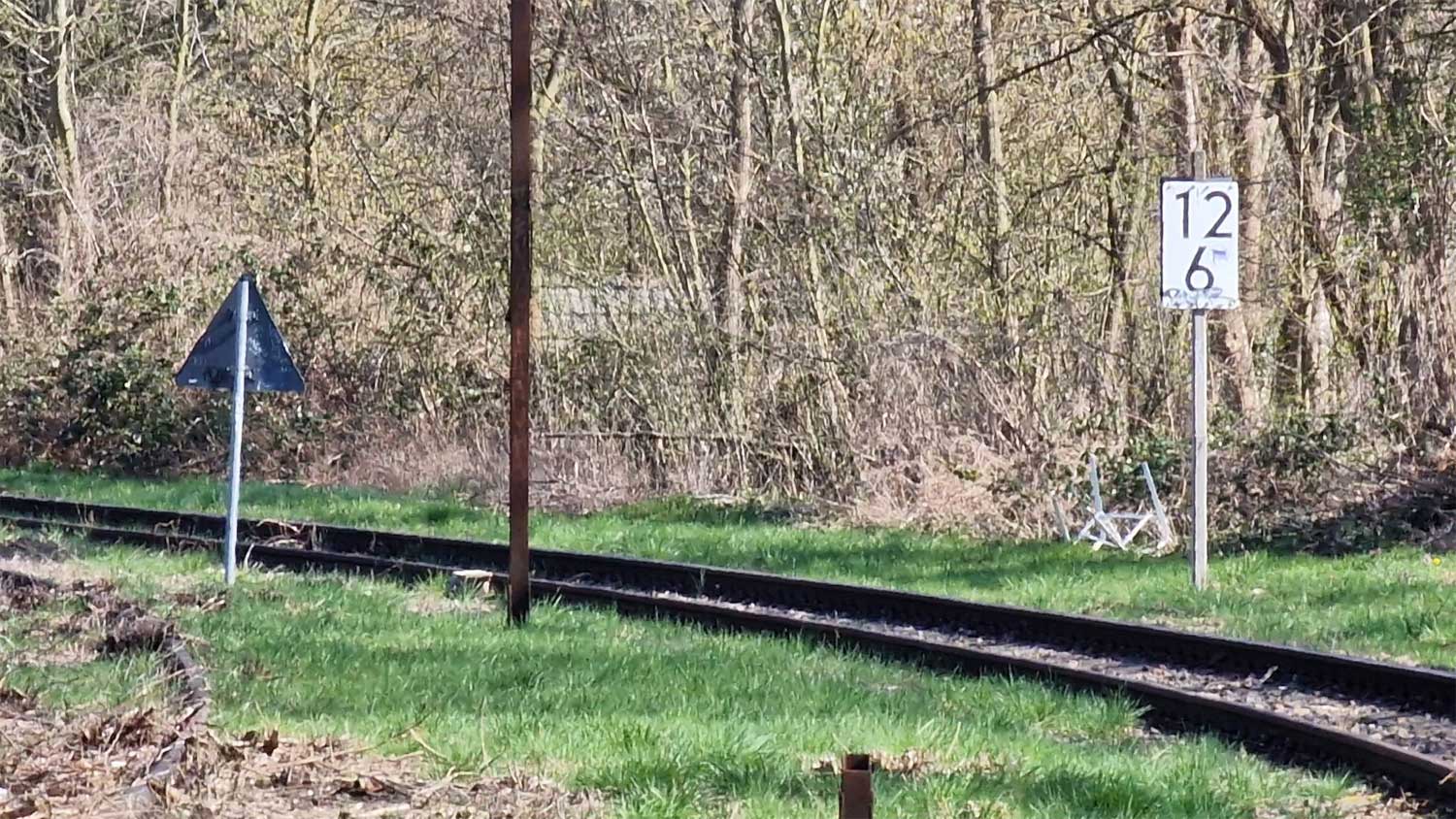 km 12,6 in Berlin-Zehlendorf Gleis gehört zur Strecke Berlin-Zehlendorf - Berlin-Wannsee Foto: René Ilmert, 09.04.2023