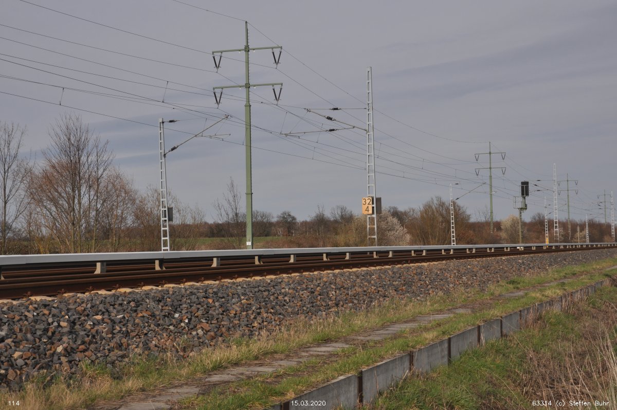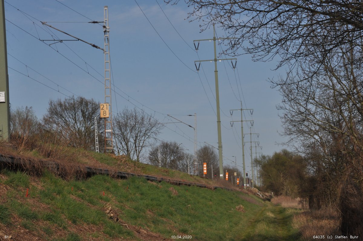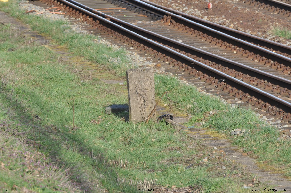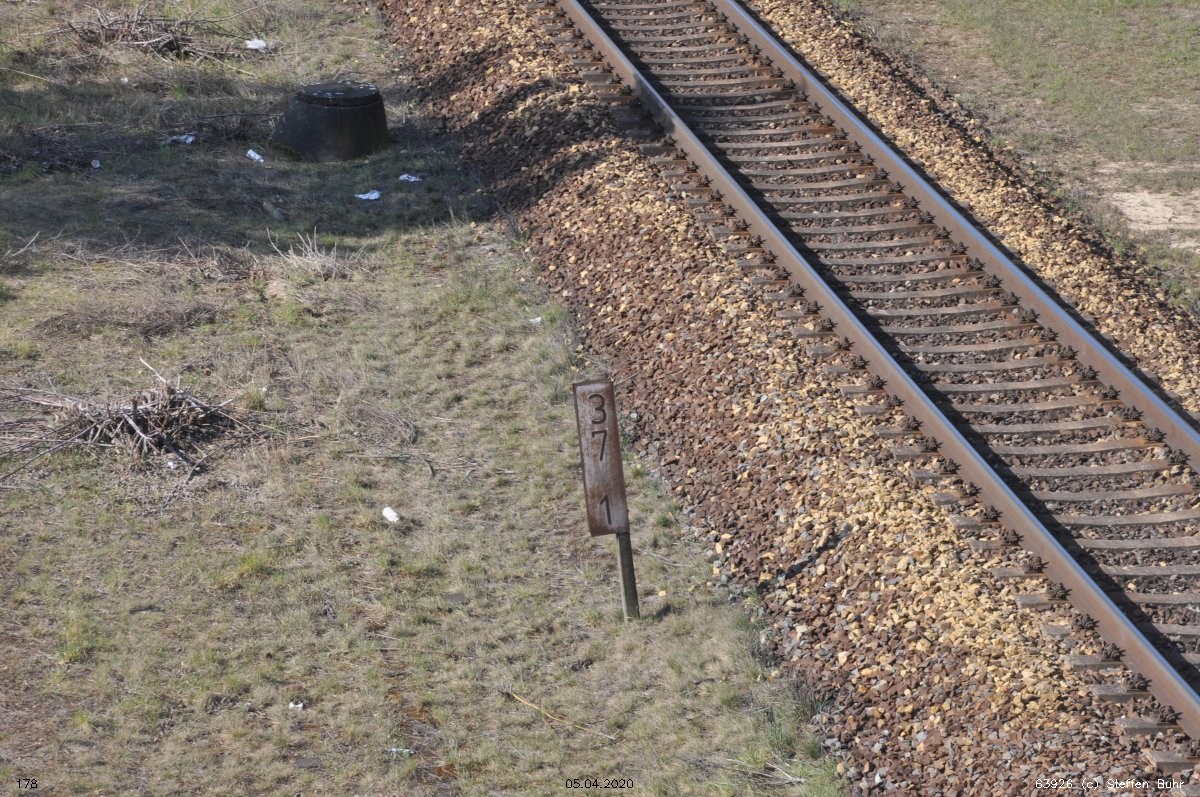 | Abzw. | Verbindungskurve nach Birkenwerder [Strecke Berlin Nordbahnhof (alt) 0,0 - Neustrelitz 98,53 - Neubrandenburg 133,73 - Stralsund 222,64 (kommend)/223,60 (gehend) - Saßnitz 272,72 - Saßnitz Hafen 274,46] | |