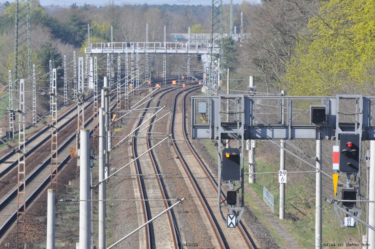 | Verbindungskurve nach Wustermark = Strecke Jüterbog 0,0 - Beelitz Stadt 40,01 - Wildpark 58,78 - Wustermark 81,10 - Nauen 90,06 | ||