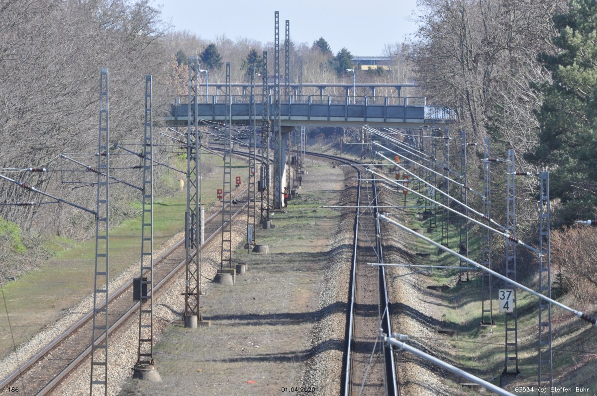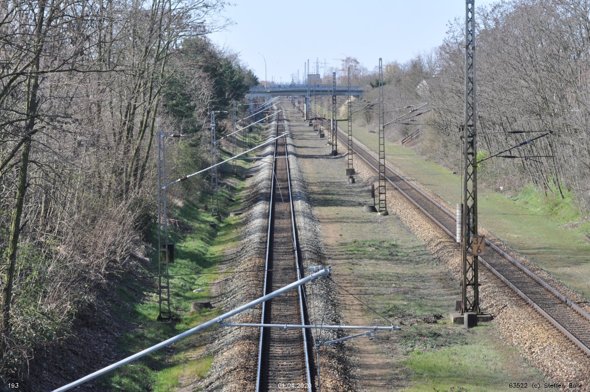 Links noch zu sehen km 0,4 der Strecke Abzw Grünauer Kreuz West - Abzw Grünauer Kreuz Süd (6145 - Gegenrichtungsgleis)