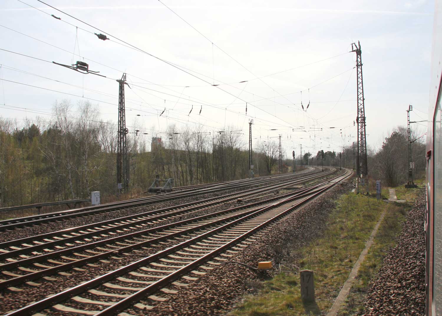 Links noch zu sehen km 1,3 der Strecke Abzw Grünauer Kreuz West - Abzw Grünauer Kreuz Süd (6145 - Richtungsgleis)