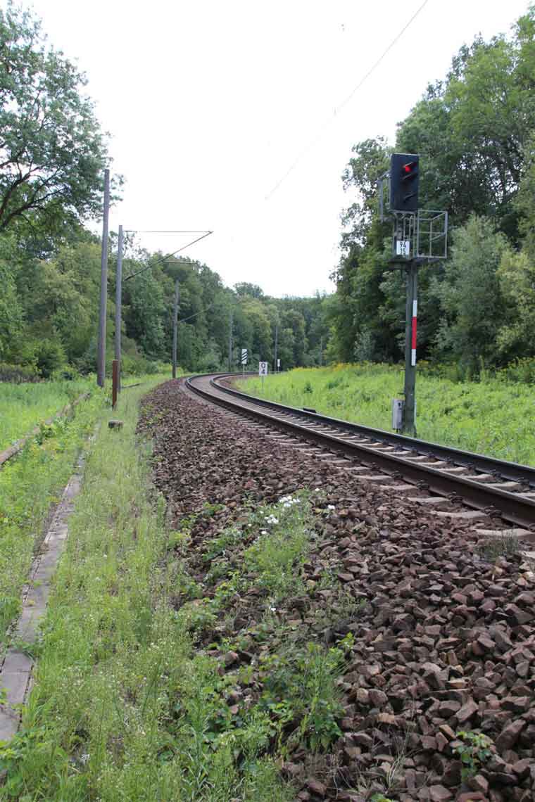 Ganz rechts schwach zu erkennen km 0,2 + 0 der Strecke