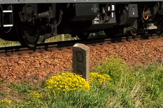 km 1,0 (Tafel und Stein rechts) der Strecke Abzw Genshagener Heide Mitte -0,03 -