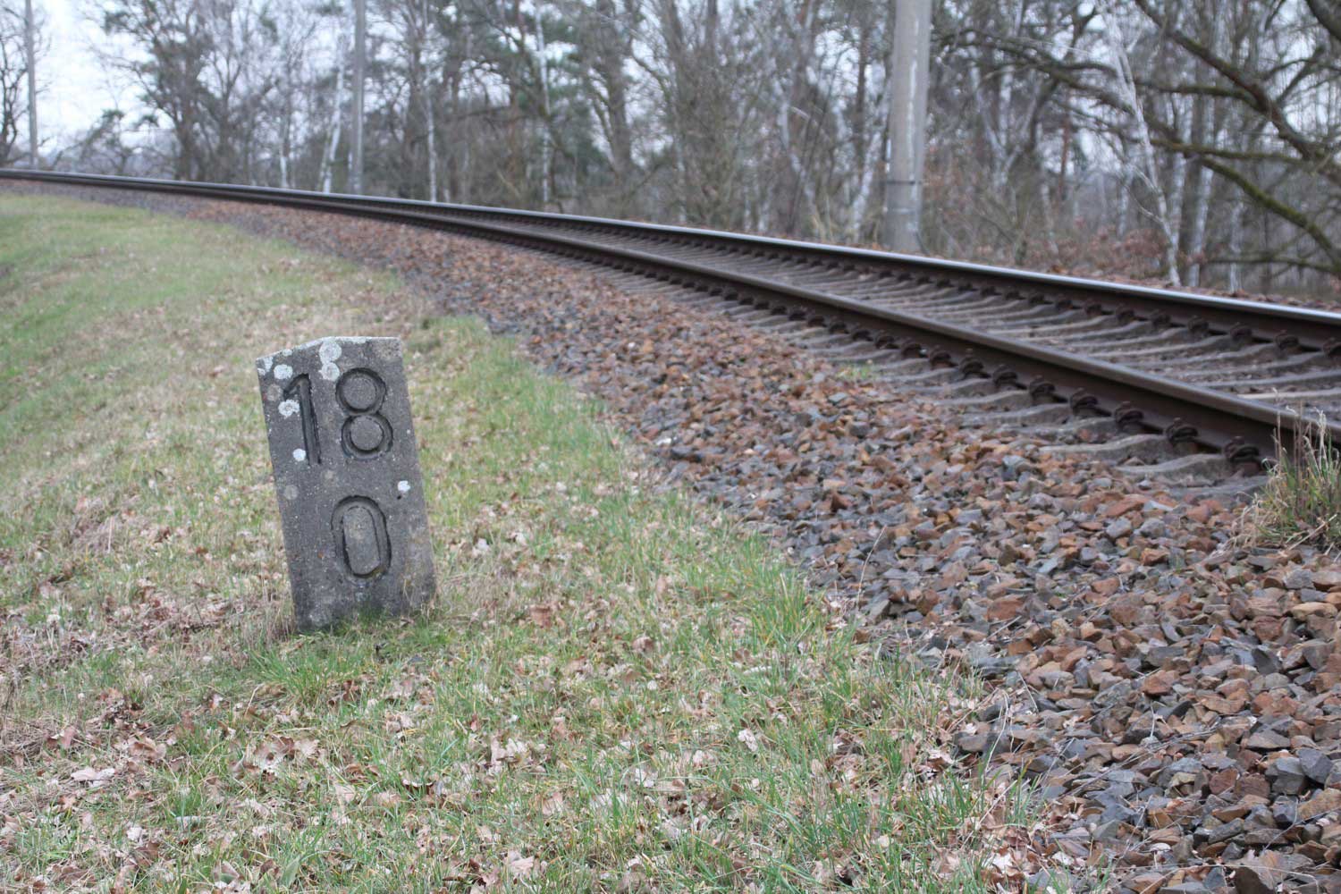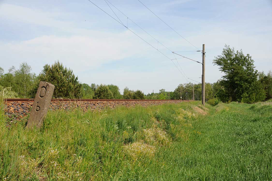 km 18,0 (Stein und Tafel) des Streckenastes Genshagener Heide, W 5, km 16,092 -