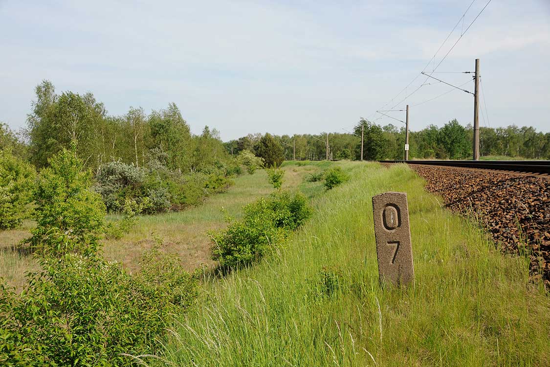 km 1,0 (Tafel und Stein rechts) gehören zur Strecke Abzw Genshagener Heide Mitte -0,03
