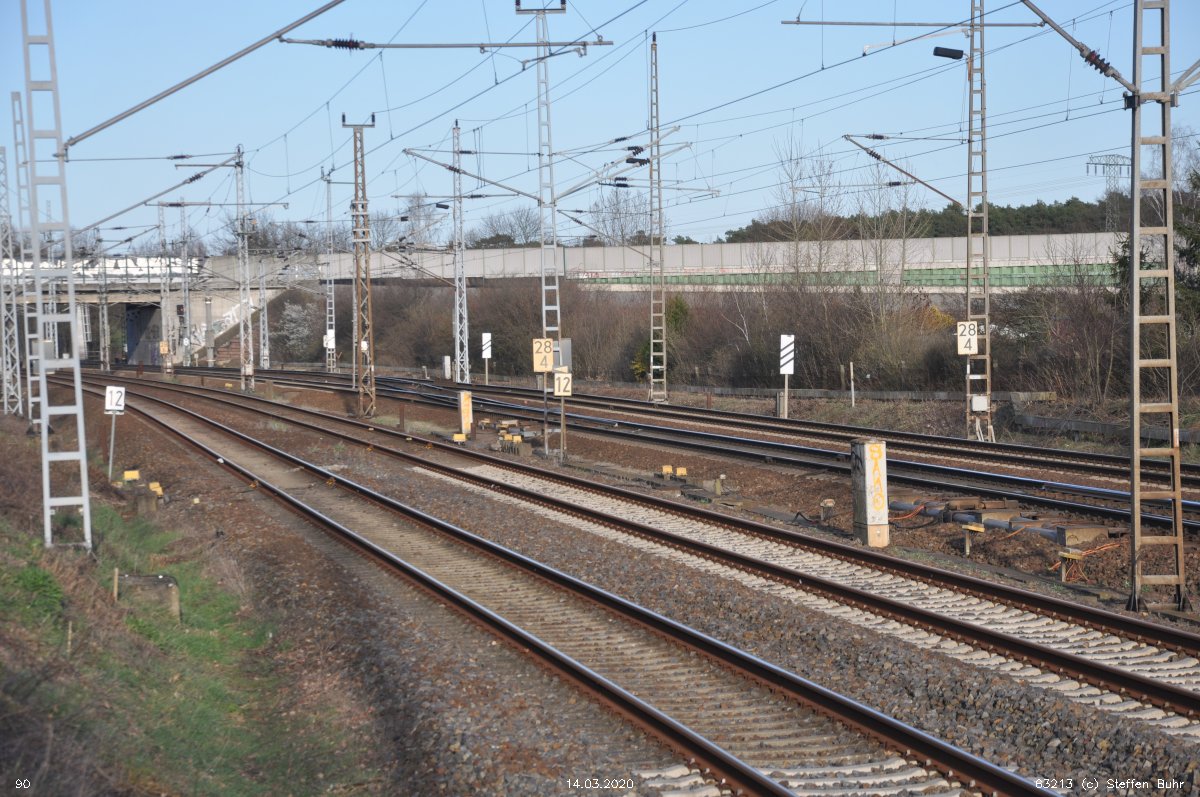 Zentralflughafen Berlin-Schönefeld Foto: Steffen Buhr, 14.03.2020 km 28,4 (links) zwischen Abzw Glasower Damm Ost und Abzw