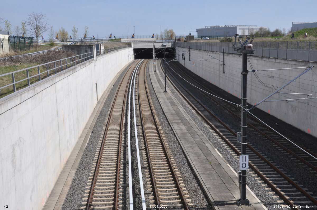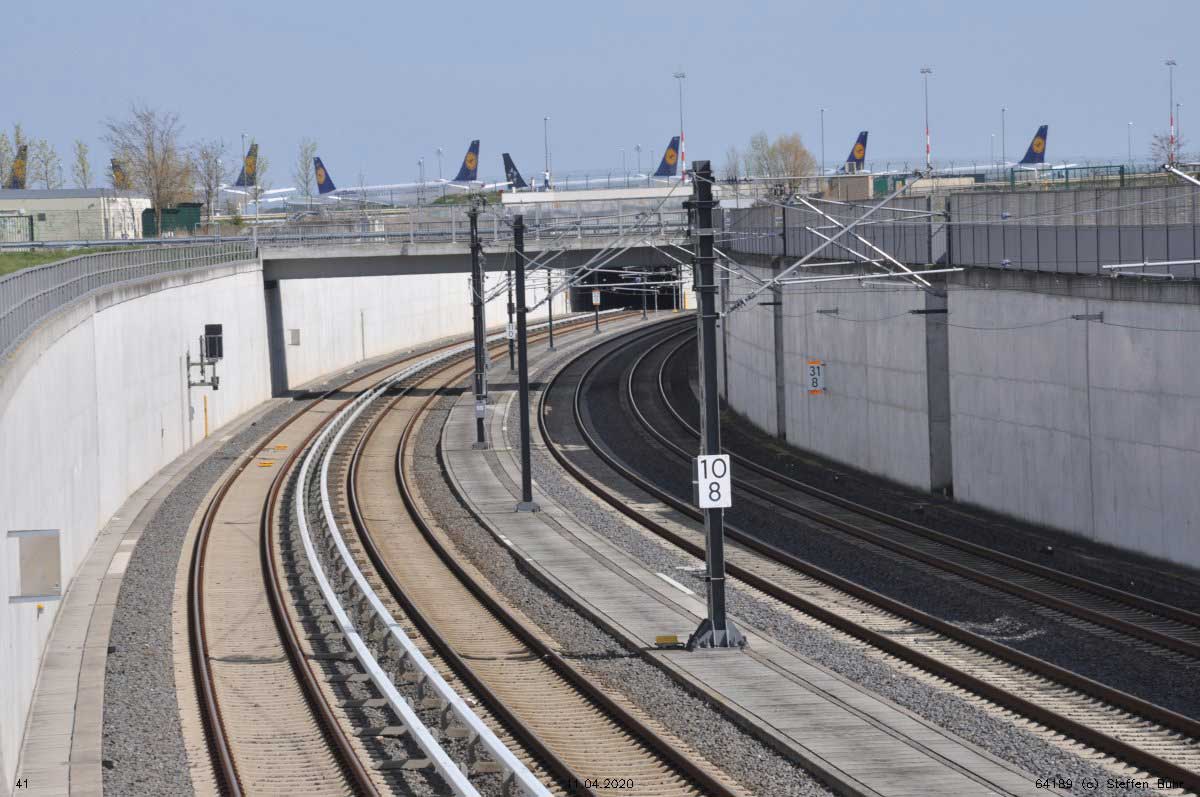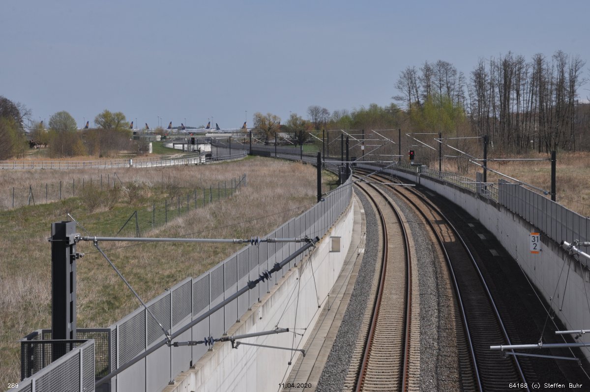 Zentralflughafen Berlin-Schönefeld Foto: Steffen Buhr, 12.04.2020 km 29,6 (links) zwischen Abzw Glasower Damm Ost und Abzw